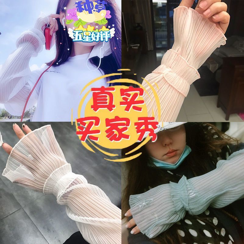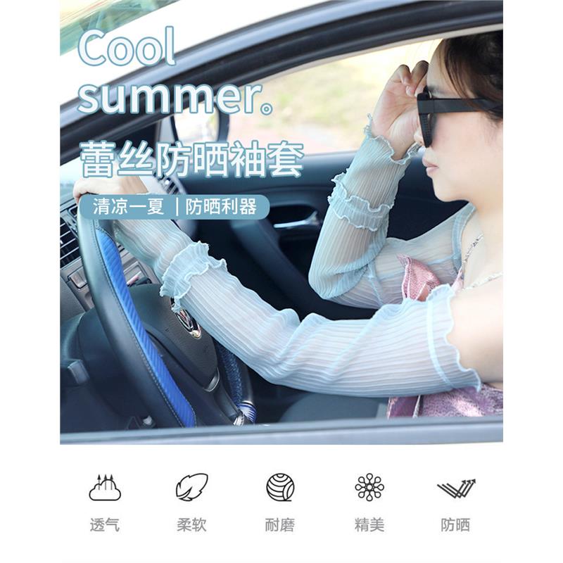 蕾丝冰袖防晒袖套女长款冰丝薄款夏季防紫外线摩托车电动车手套夏