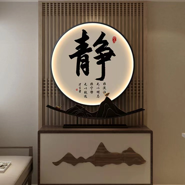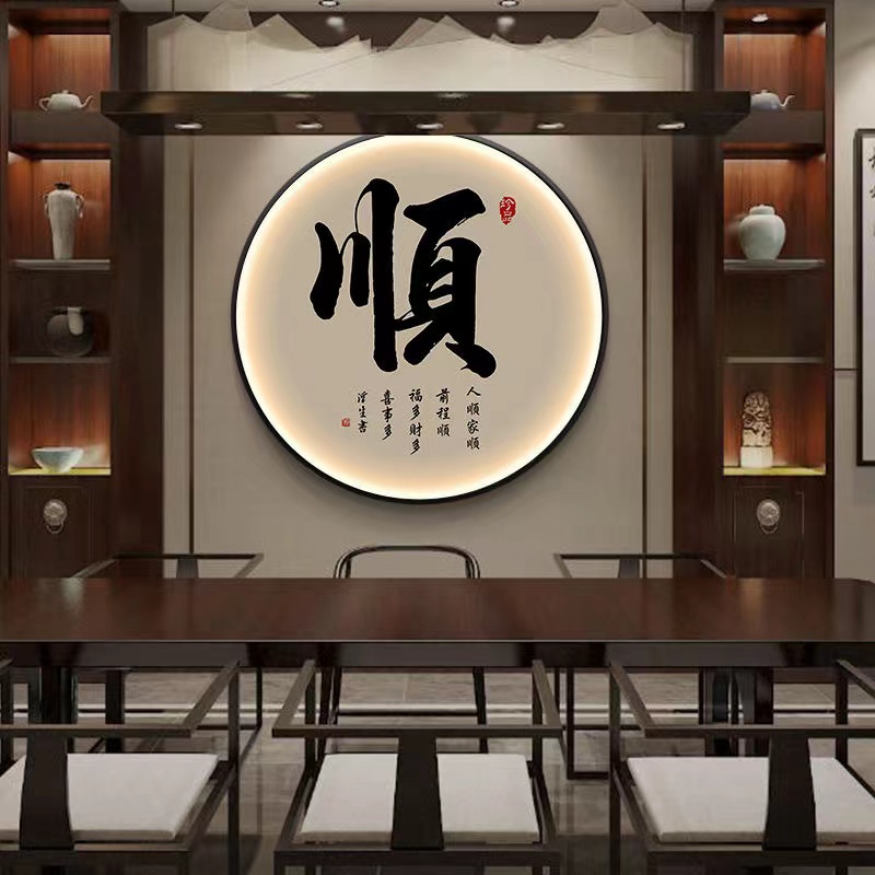新中式书法字画圆形LED带灯画书房办公室禅意挂画入户玄关装饰画