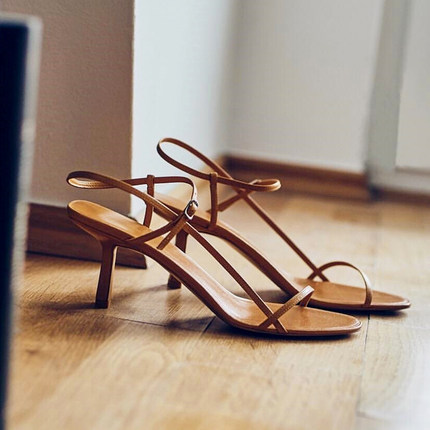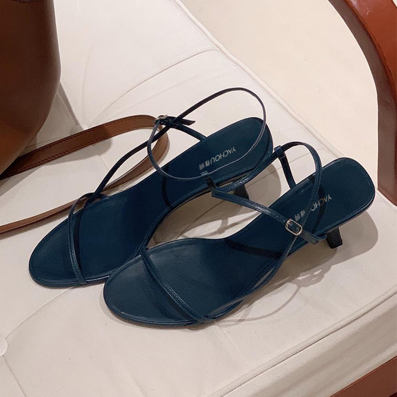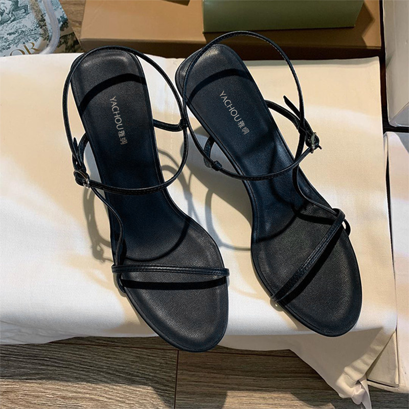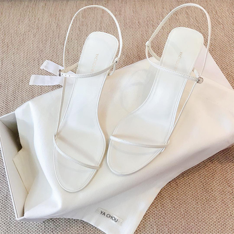 法式细跟一字带凉鞋仙女风2026夏新款百搭猫跟网红白色细带高跟鞋