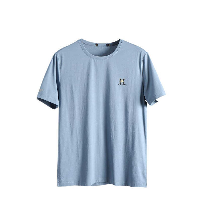 丝光棉面料!丝滑透气!外贸男装夏季圆领休闲字母刺绣短袖T恤衫