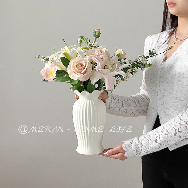小众简约现代白色陶瓷花瓶高级感水养插花鲜花客厅桌面装饰品摆件