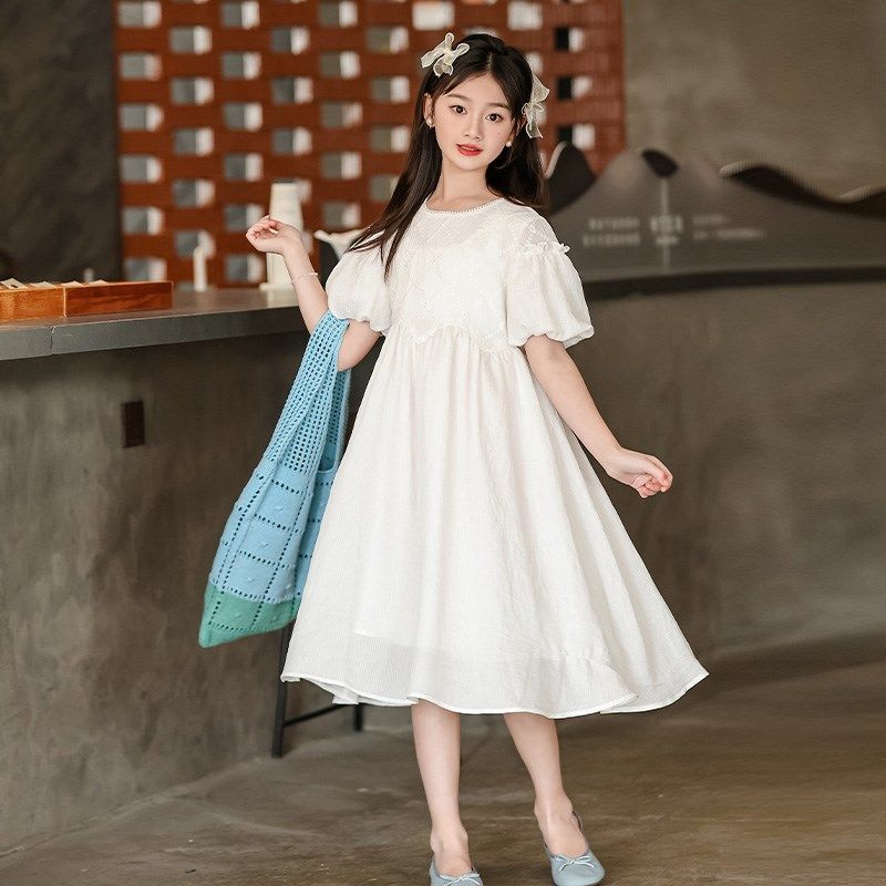 女童连衣裙夏装薄款2024新款儿童洋气公主裙大童夏季学生白色裙子