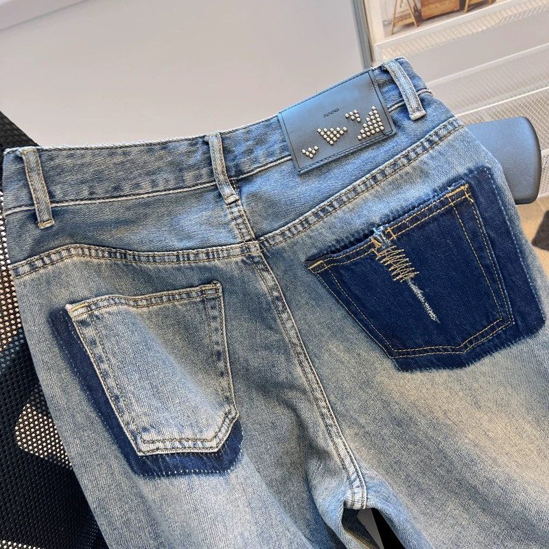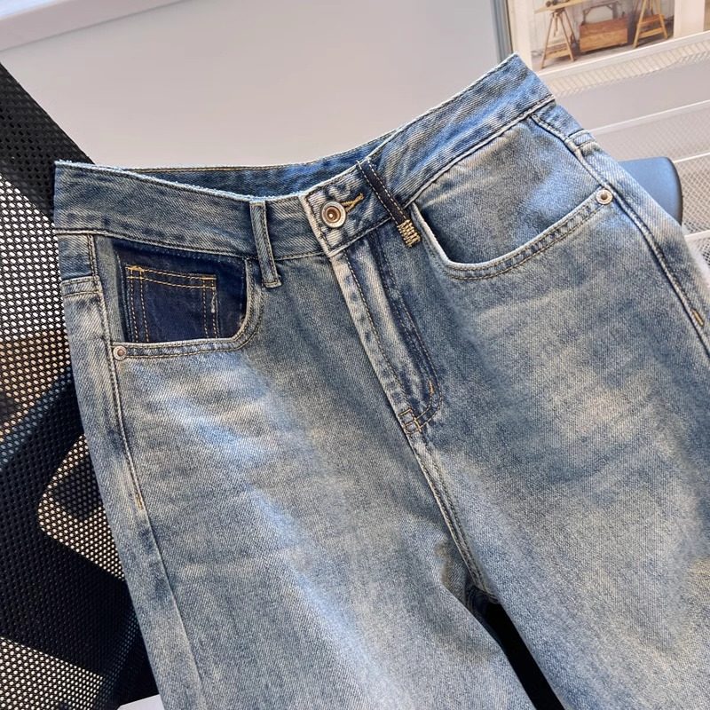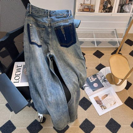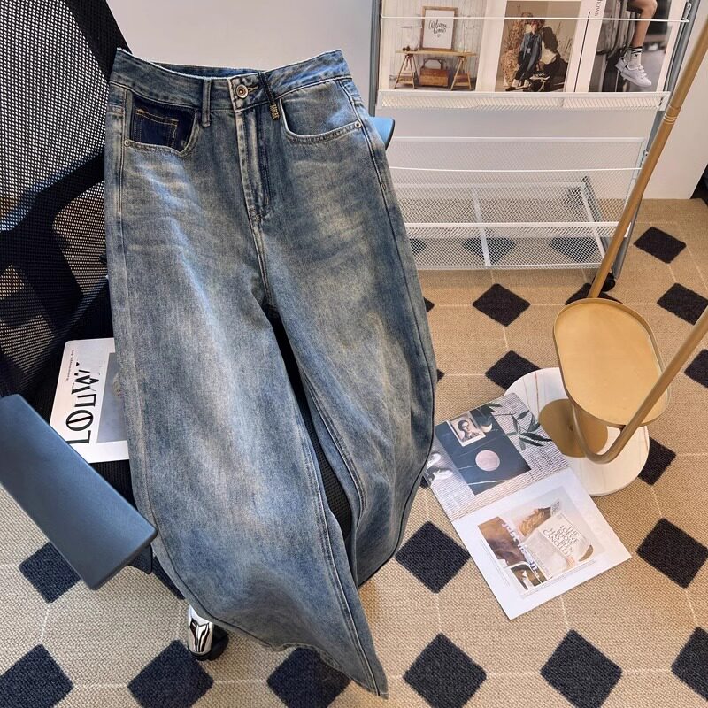 美式水洗蓝直筒牛仔裤男春秋新款设计感小众潮牌复古宽松休闲裤子