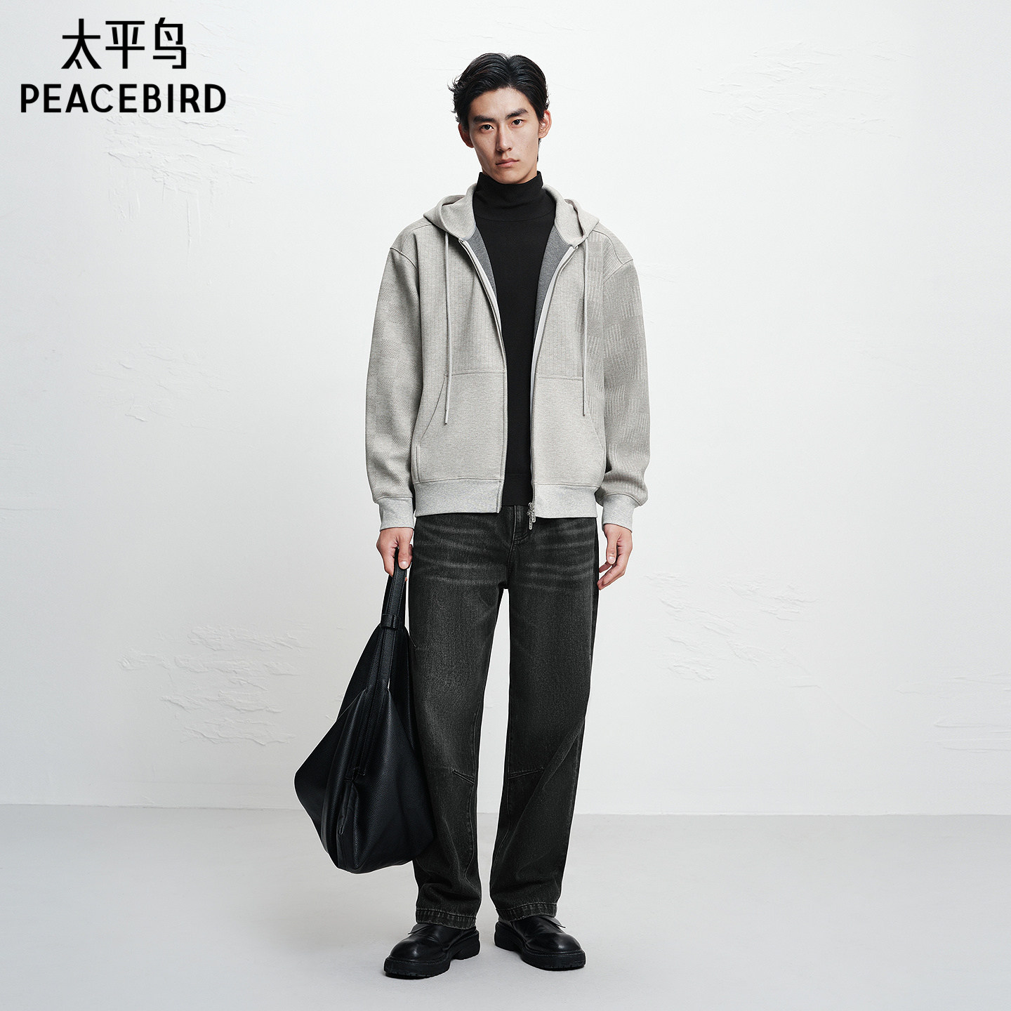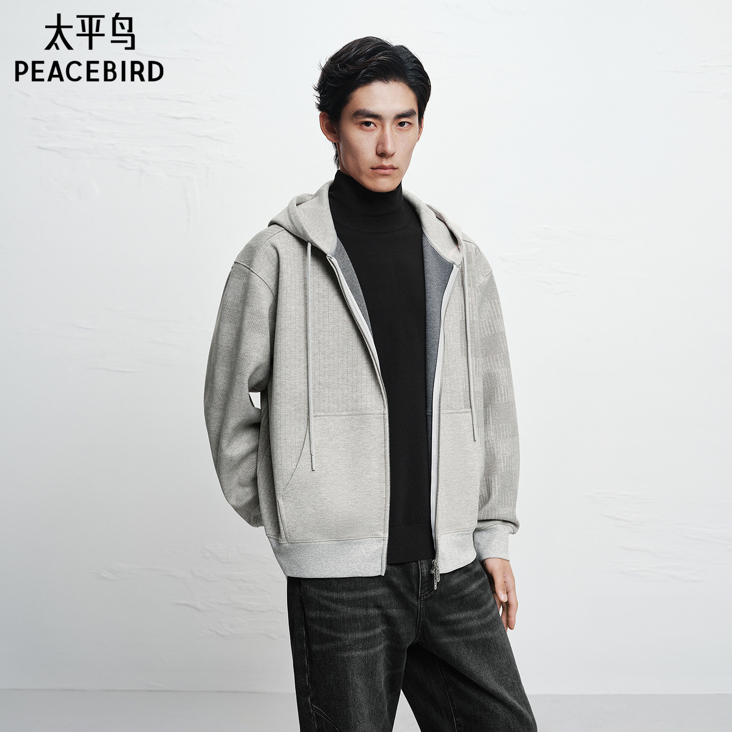 【商场同款】太平鸟男装卫衣25冬季新款连帽开衫外套 B1CRF4438