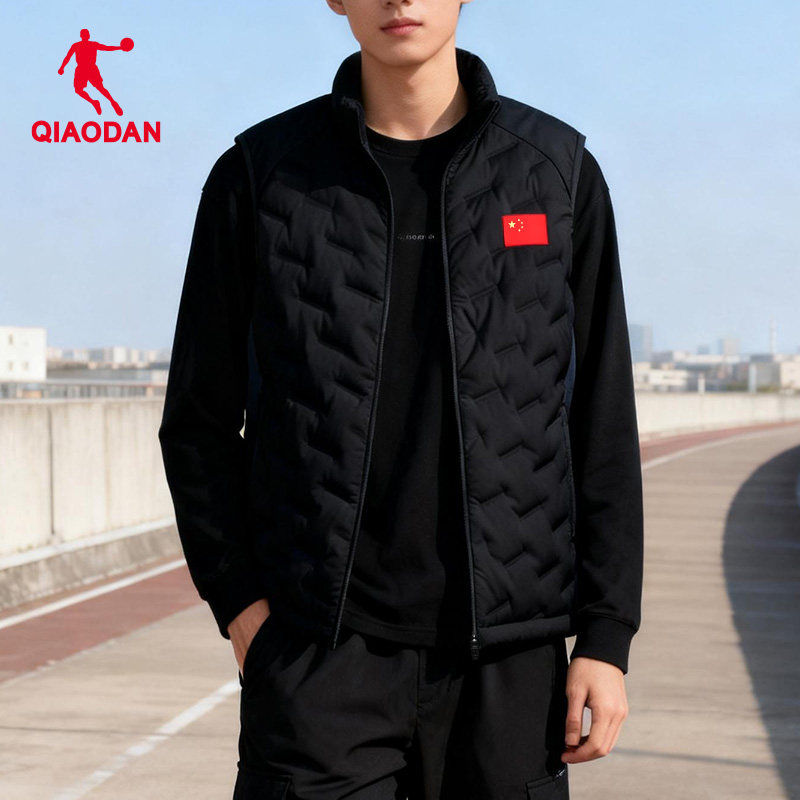 乔丹羽绒马甲男士2025冬季新款跑步健身立领外套休闲保暖轻薄马夹