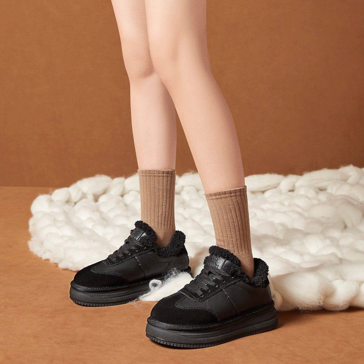 骆驼女鞋雪地靴2026冬季新款加绒板鞋东北低帮舒适保暖棉鞋短靴女