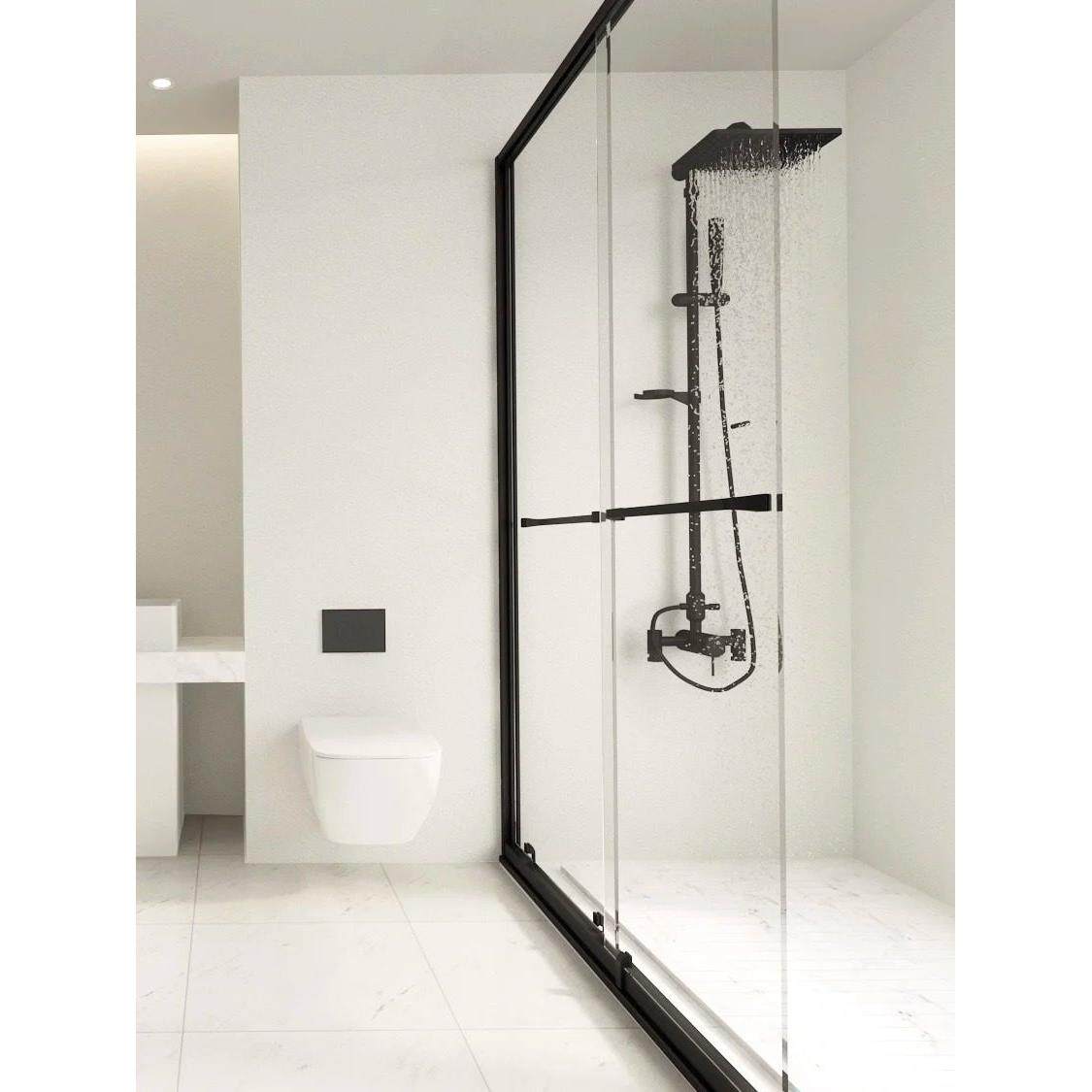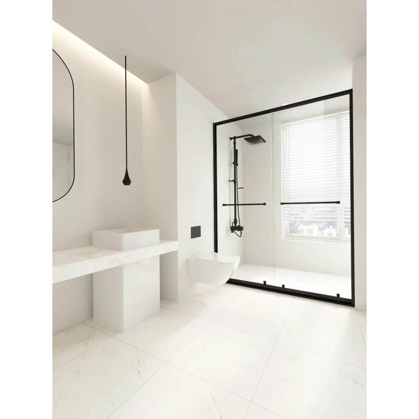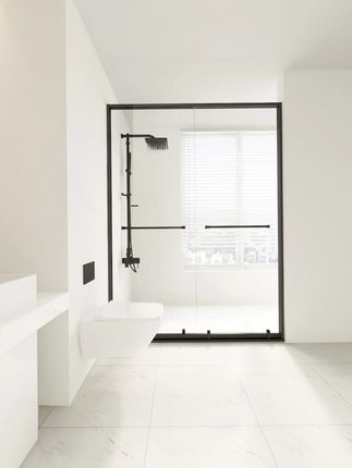 极简一字型走下轮无框两移门淋浴房干湿分离玻璃隔断卫生间浴室