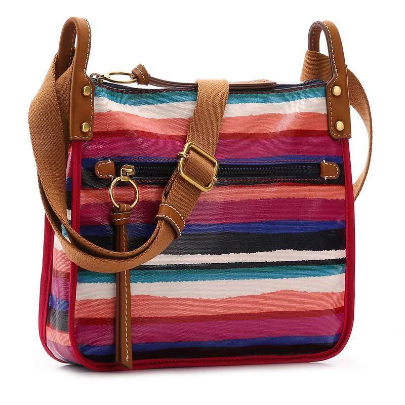 美国直邮Fossil/化石正品348763彩色横纹女包帆布包斜挎包