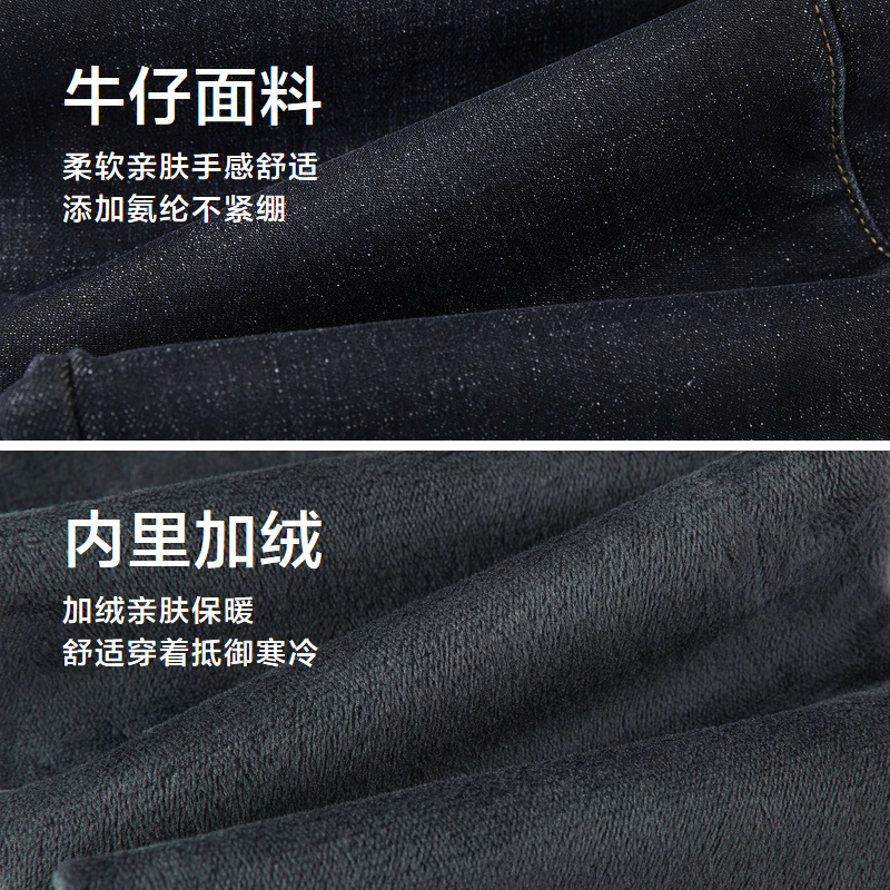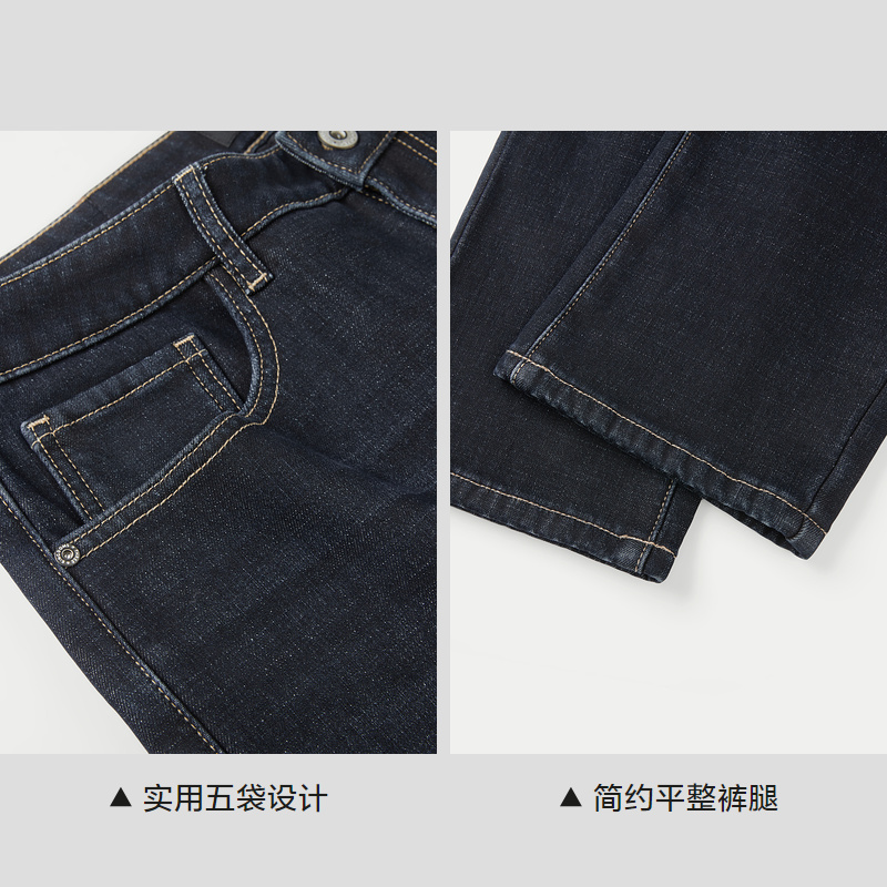 HLA/海澜之家三国演义牛仔裤2025秋冬新款五袋款加绒直筒裤子男