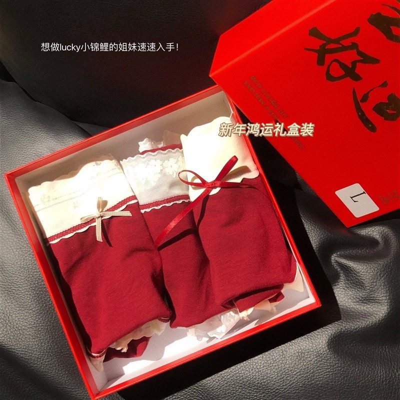 2024本命年红内裤女纯棉车厘子红礼盒装石墨烯5A抗菌裆三角裤