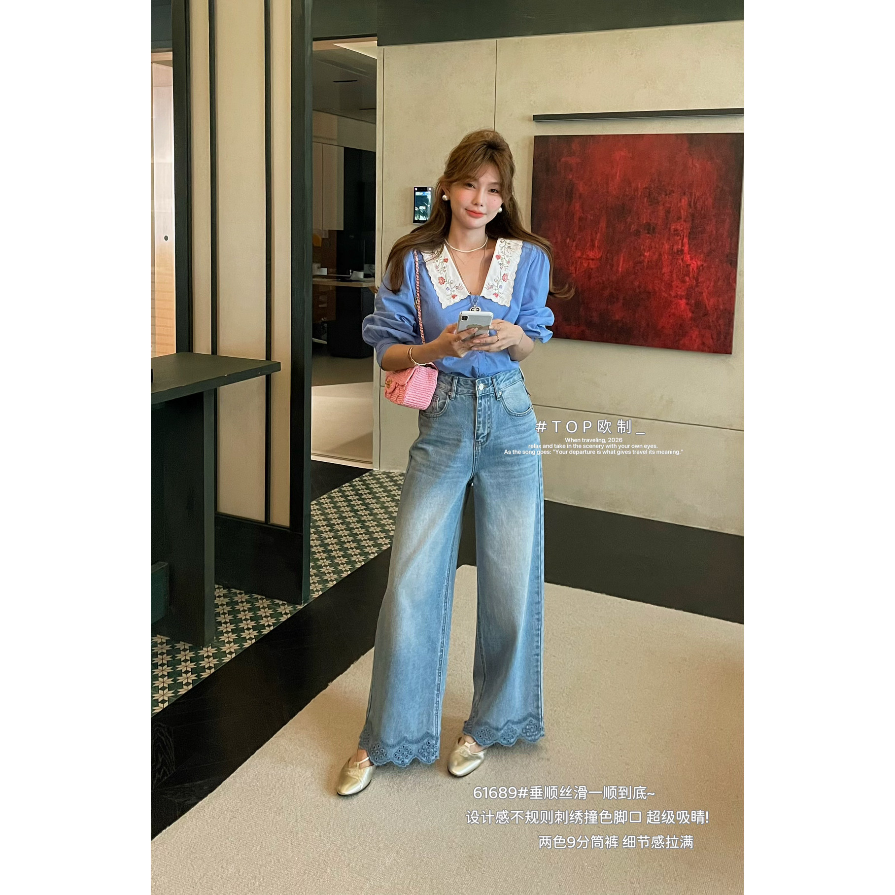 TOP 欧制-绣撞色脚口吸睛百搭9分筒裤细节感拉满牛仔裤61689浅兰
