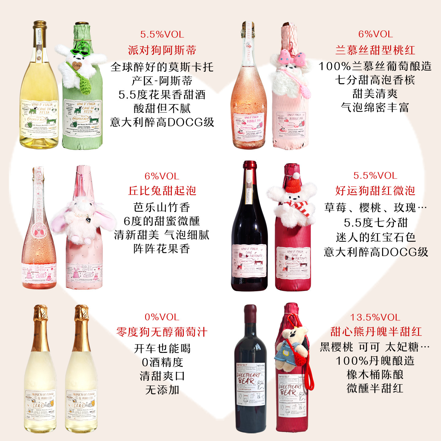 意大利芭乐山竹莫斯卡托起泡香槟气泡酒甜型桃红葡萄酒低度微醺酒
