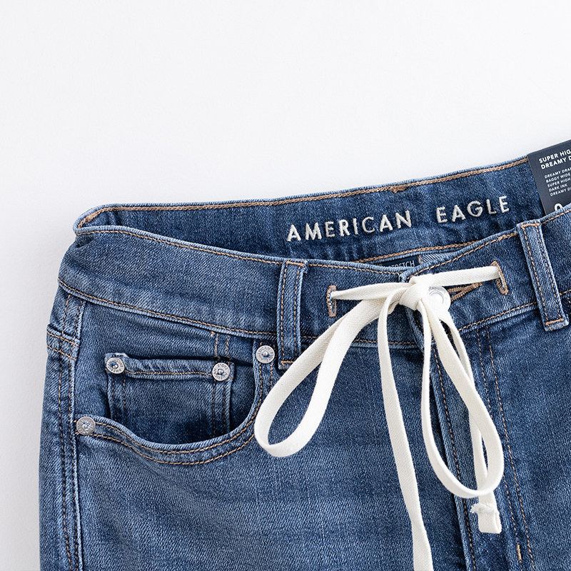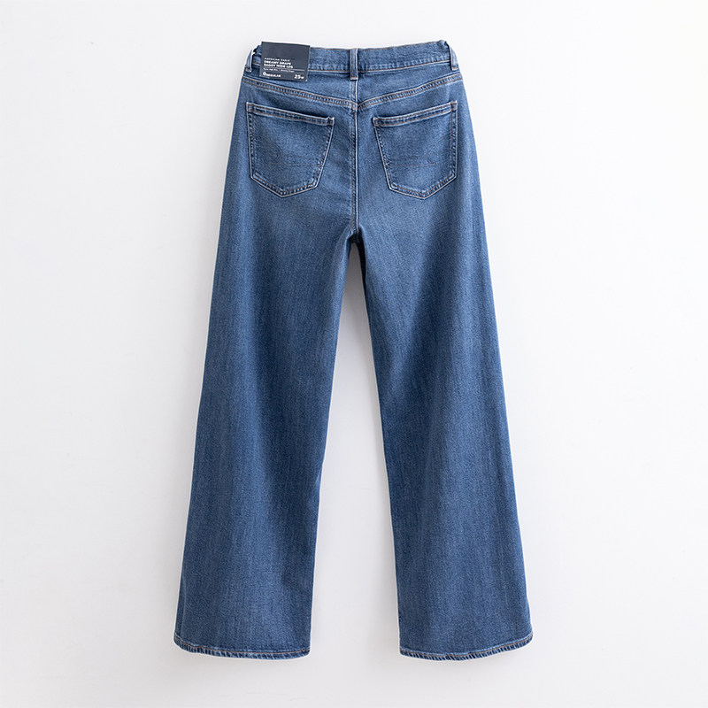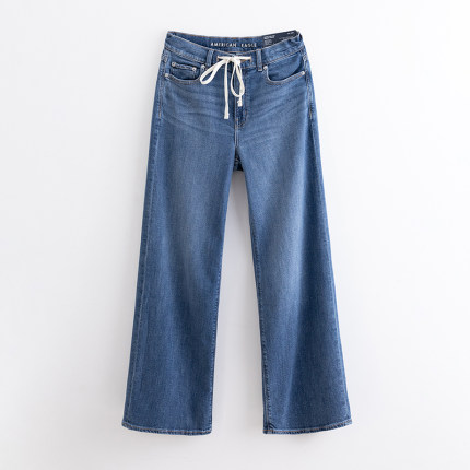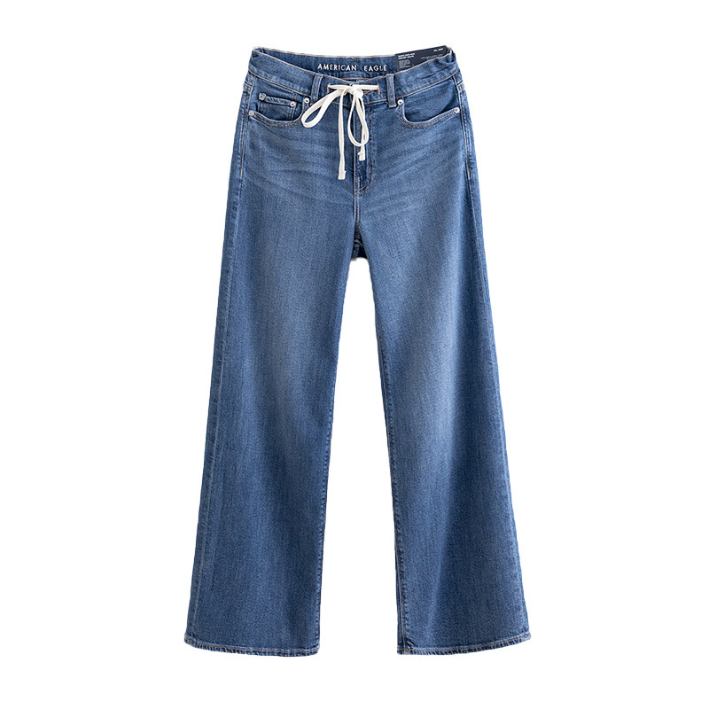 美国鹰 AEO秋款超高腰弹力牛仔裤女宽松显瘦抽绳薄款阔腿直筒裤