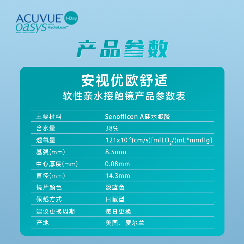 爱尔兰强生安视优欧舒适ACUVUE OASYS隐形眼镜日抛5片/盒硅水凝胶