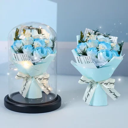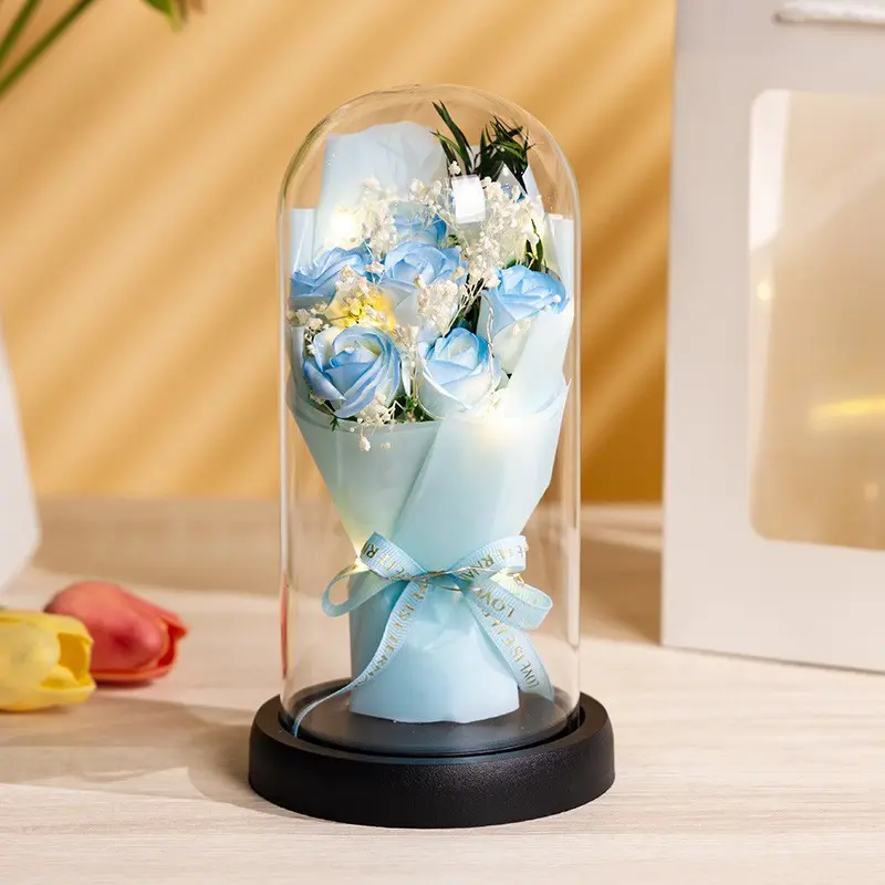 520礼物碎冰蓝永生花生日送女友妈妈情人节玫瑰花花束
