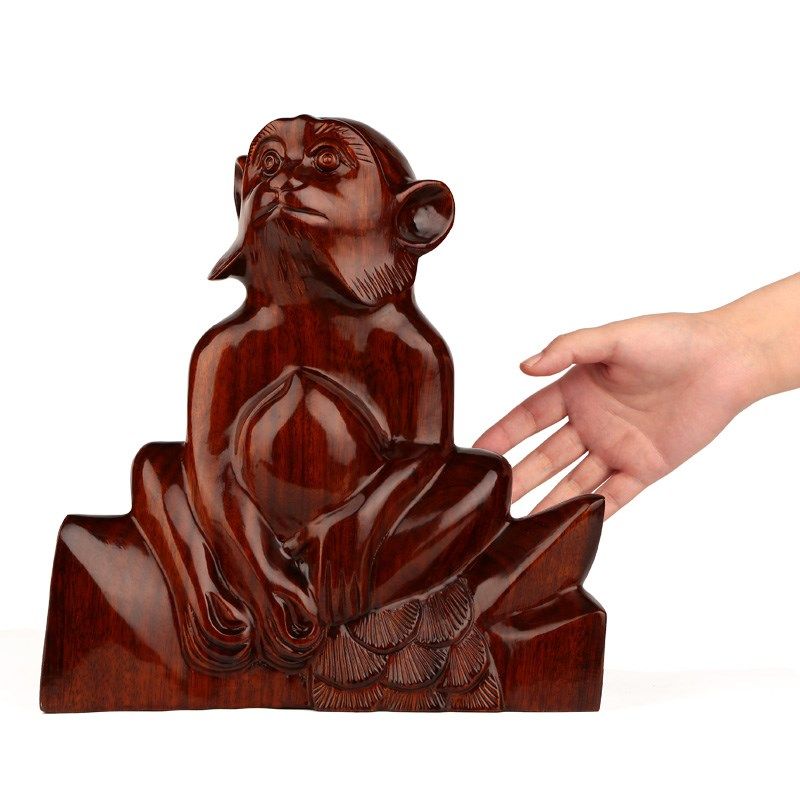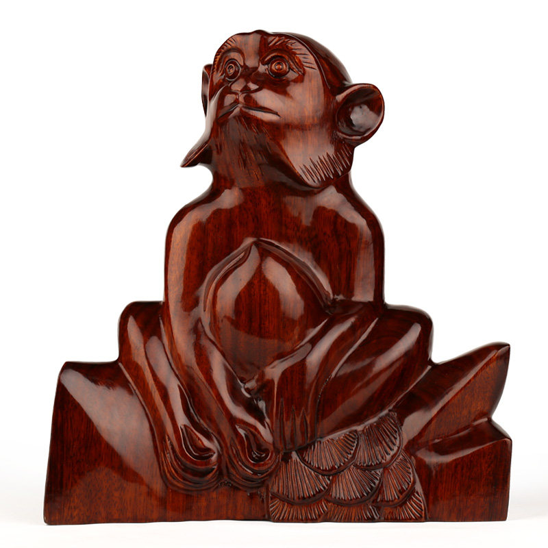 红木猴年工艺品 l东阳木雕刻生肖猴子摆件 实木质猴子祝寿客厅摆