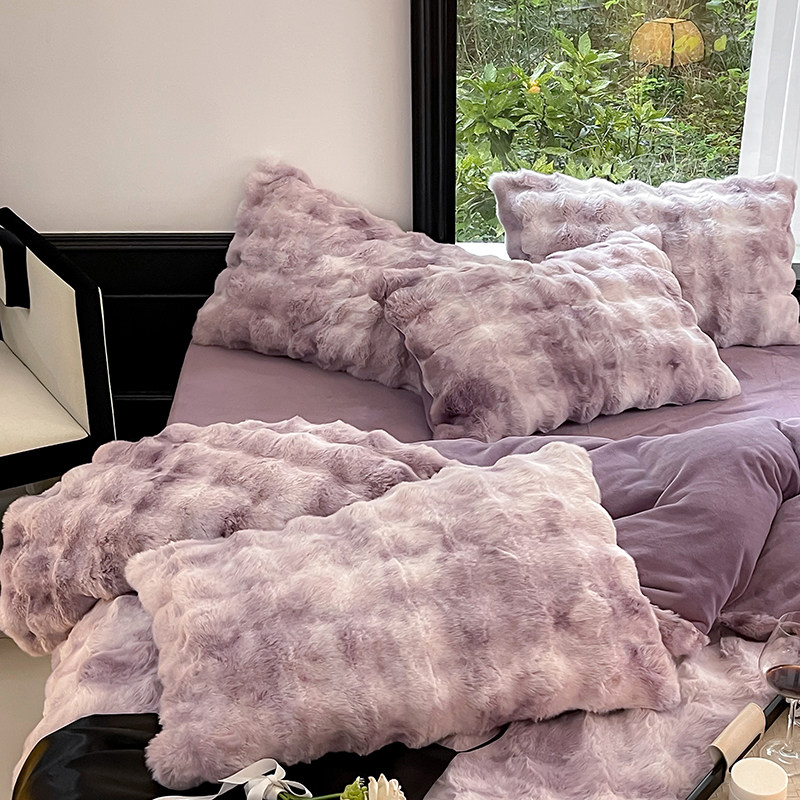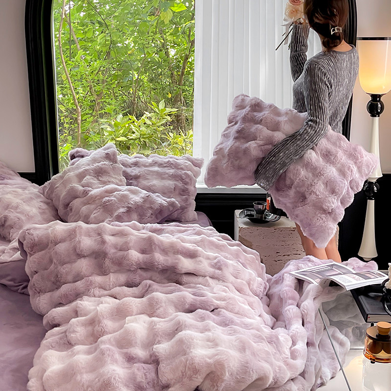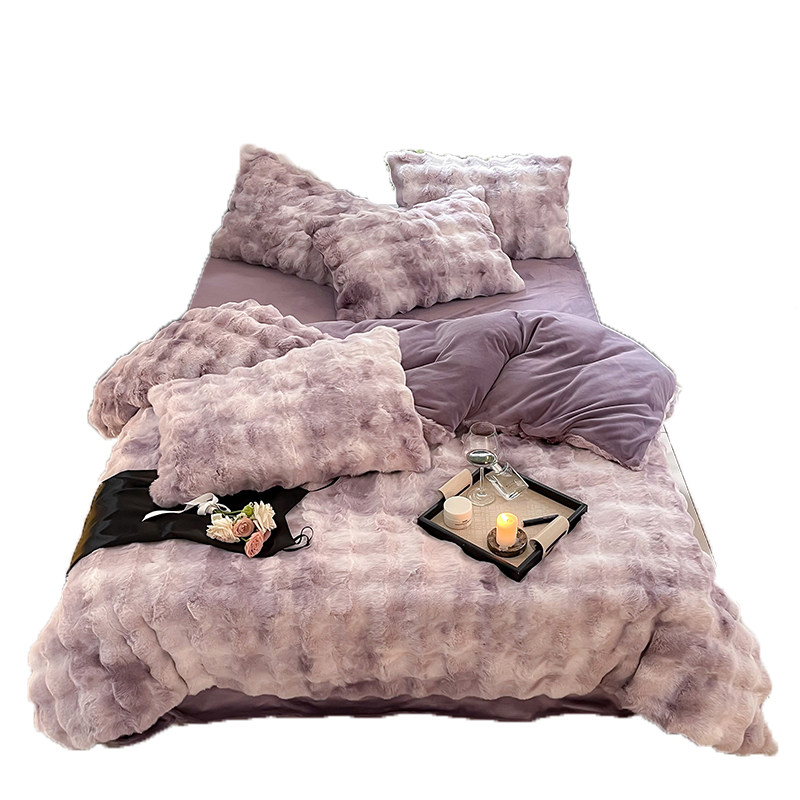 冬季兔兔绒扎染加厚床上四件套高级皮草被套珊瑚双面毛牛奶绒床单