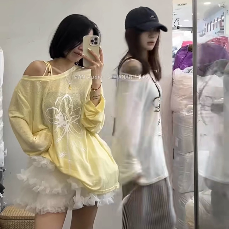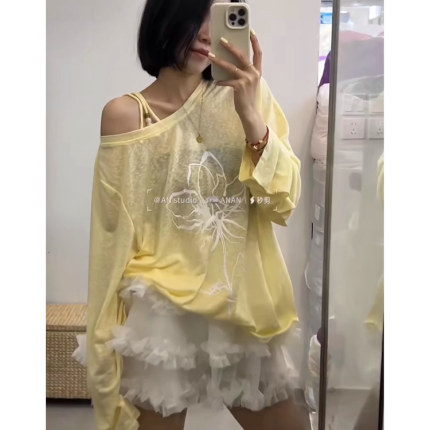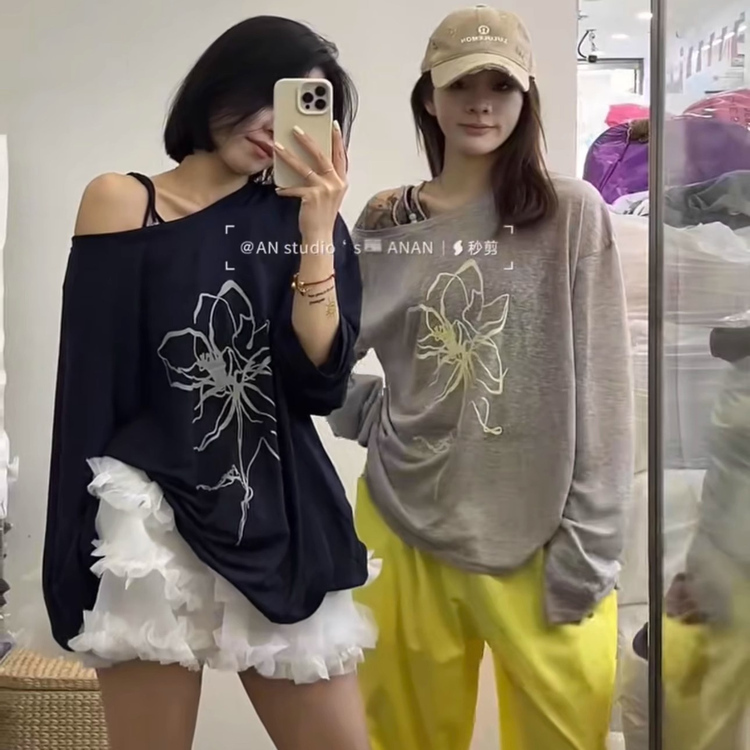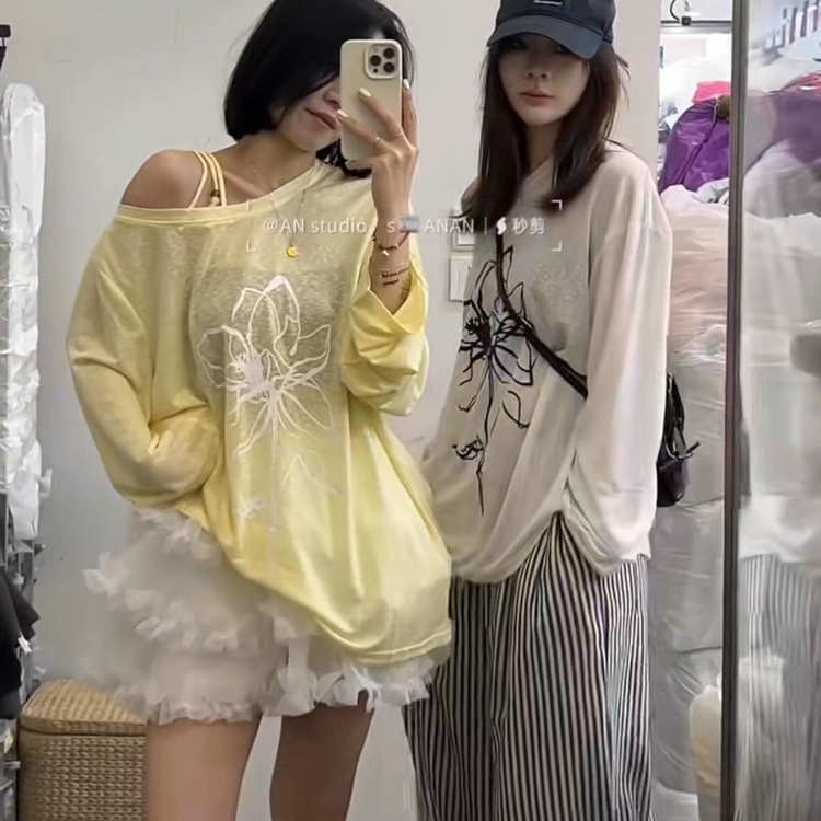 薄款防晒长袖T恤女夏季超薄胖mm大码200斤印花宽松休闲百搭上衣潮