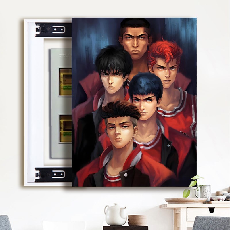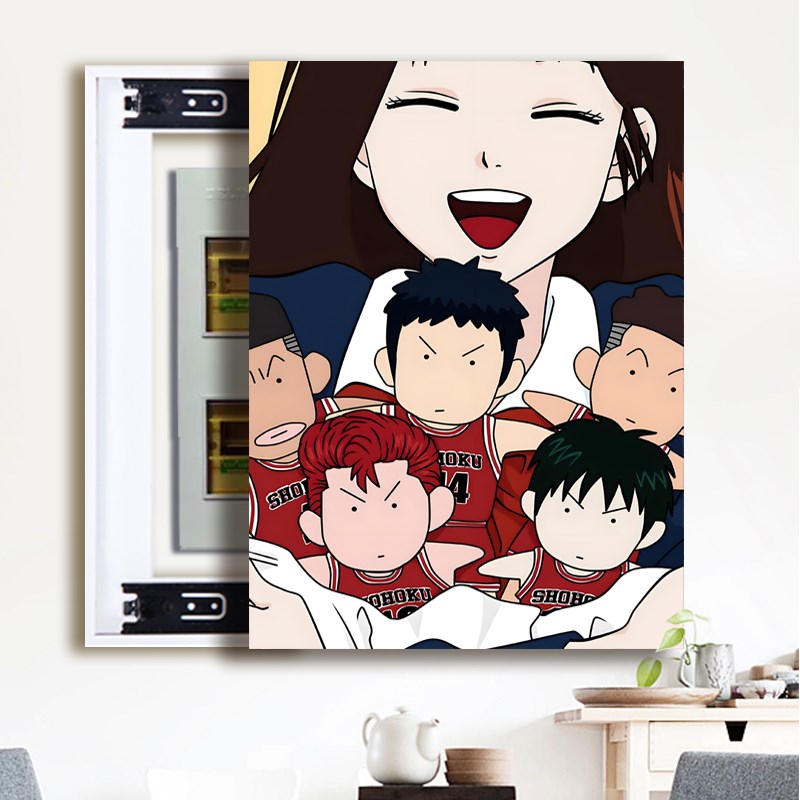 竖款灌篮高手电表箱装饰画卡通配电箱推拉画客厅S开关盒遮挡免打
