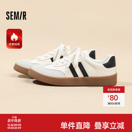 Semir女鞋德训鞋2025秋冬新款阿甘鞋子加绒小白鞋运动平底板鞋女