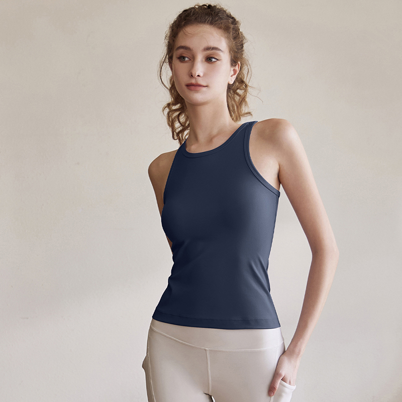 瑜伽服女背心无袖运动上衣带胸垫跑步普拉提训练夏季健身长款工字
