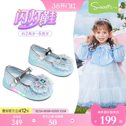 闪灯鞋|斯纳菲女童水晶鞋春季新款2026小女孩爱莎软底防滑宝宝鞋