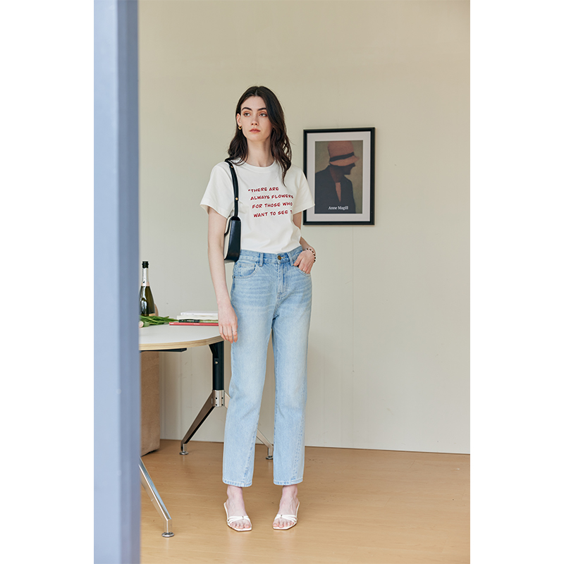 HeyDress法式直筒九分裤牛仔裤