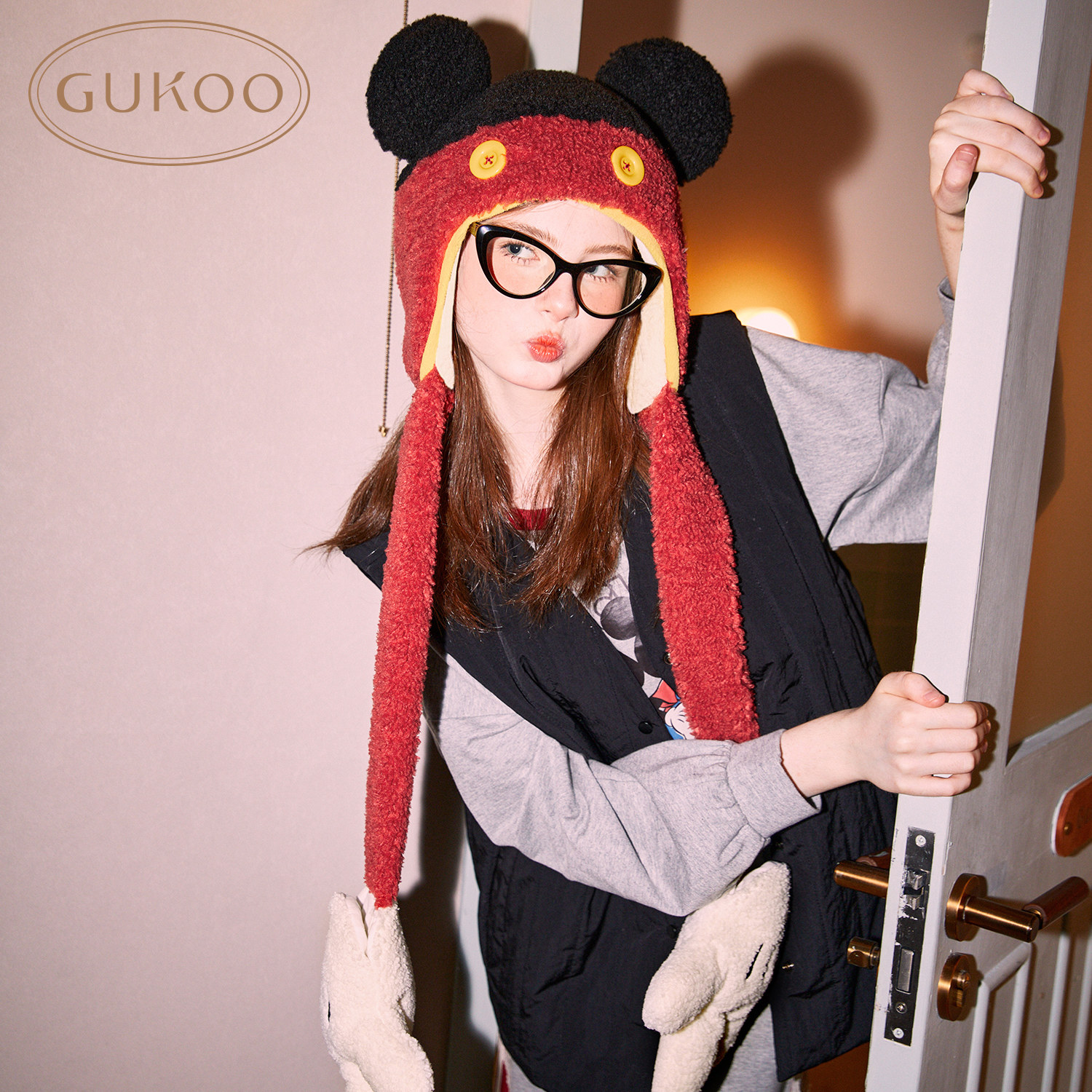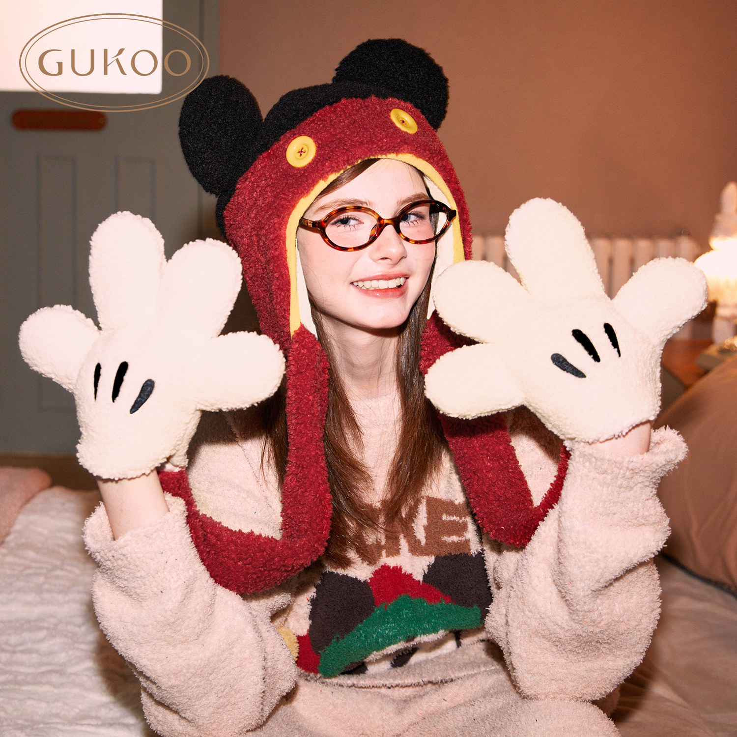 果壳帽子女冬迪士尼帽子米奇帽子围巾一体冬季帽子生日圣诞礼物