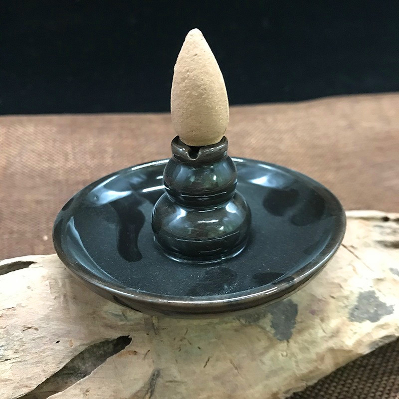 陶瓷烟倒流香托香座线香磨盘香炉香插观烟香薰炉塔香锥香高山流水