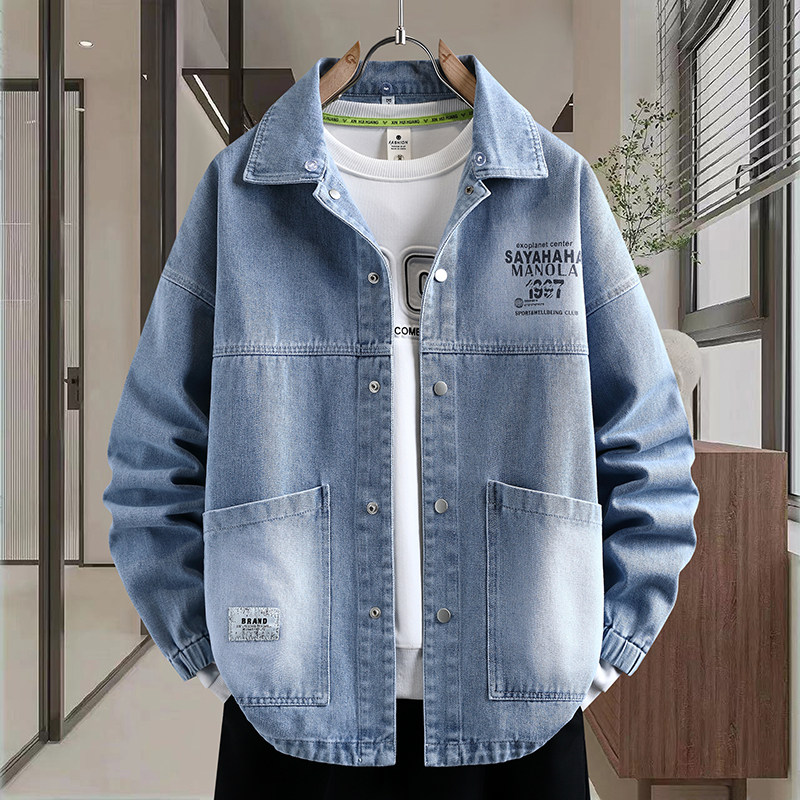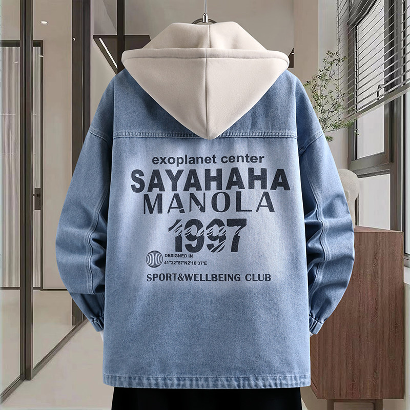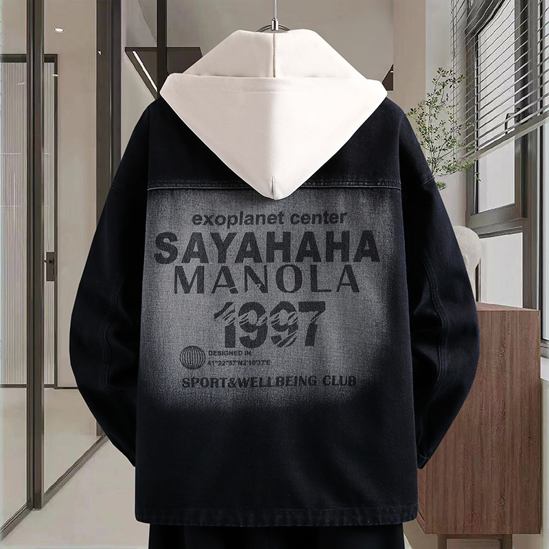 2026春季新款男生可脱卸帽牛仔夹克口袋贴标设计潮流港风百搭外套