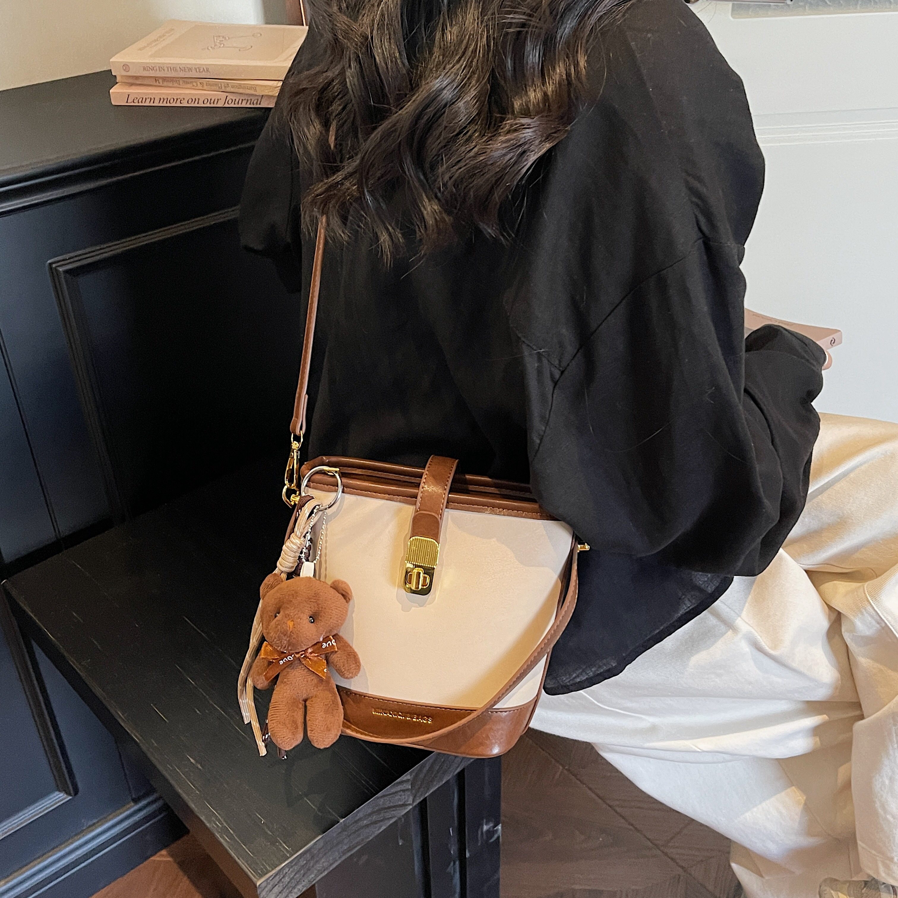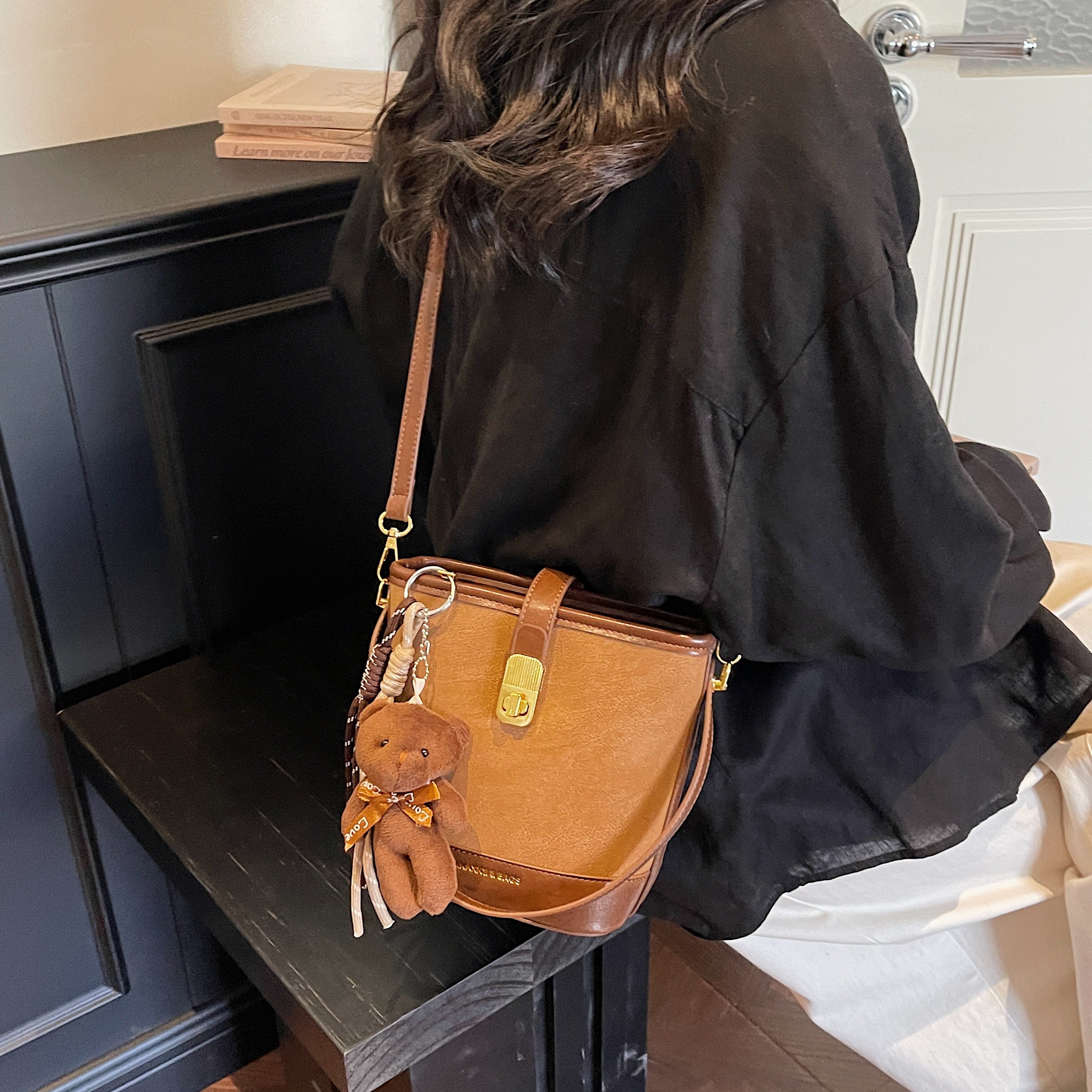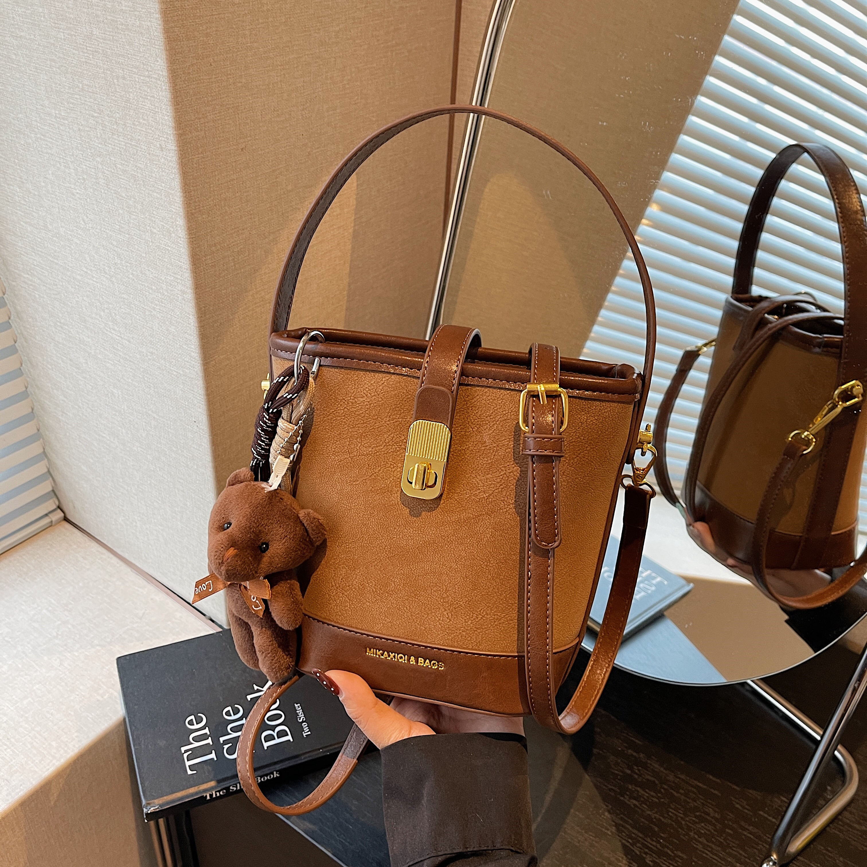 小众复古撞色水桶包高级感迷你百搭手提斜挎包超火时尚流行小方包