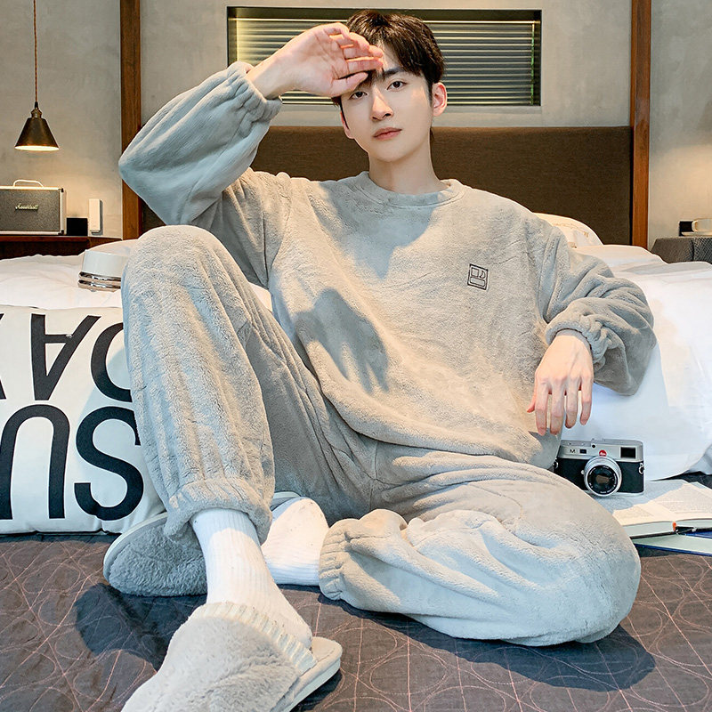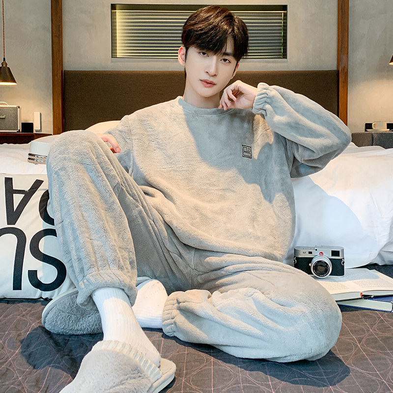 2026年新款珊瑚绒睡衣男款冬季加绒加厚保暖秋冬青少年家居服套装