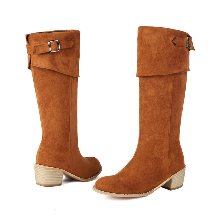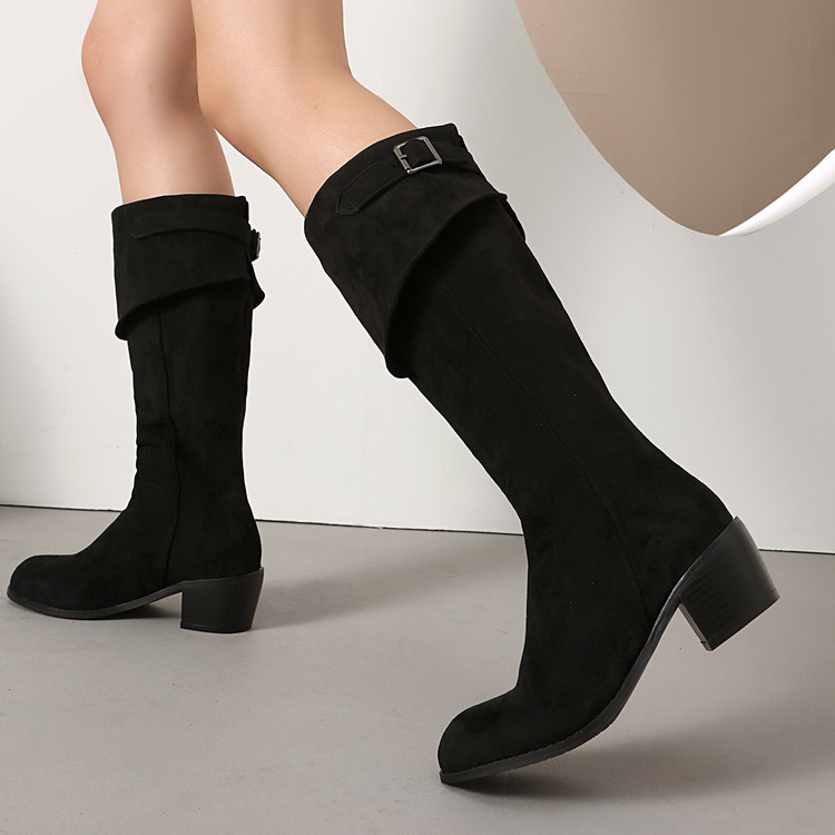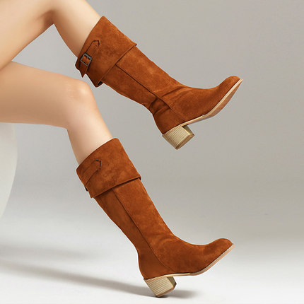 磨砂百搭不过膝长筒骑士靴女2025新款复古粗跟高筒靴秋冬季女鞋子
