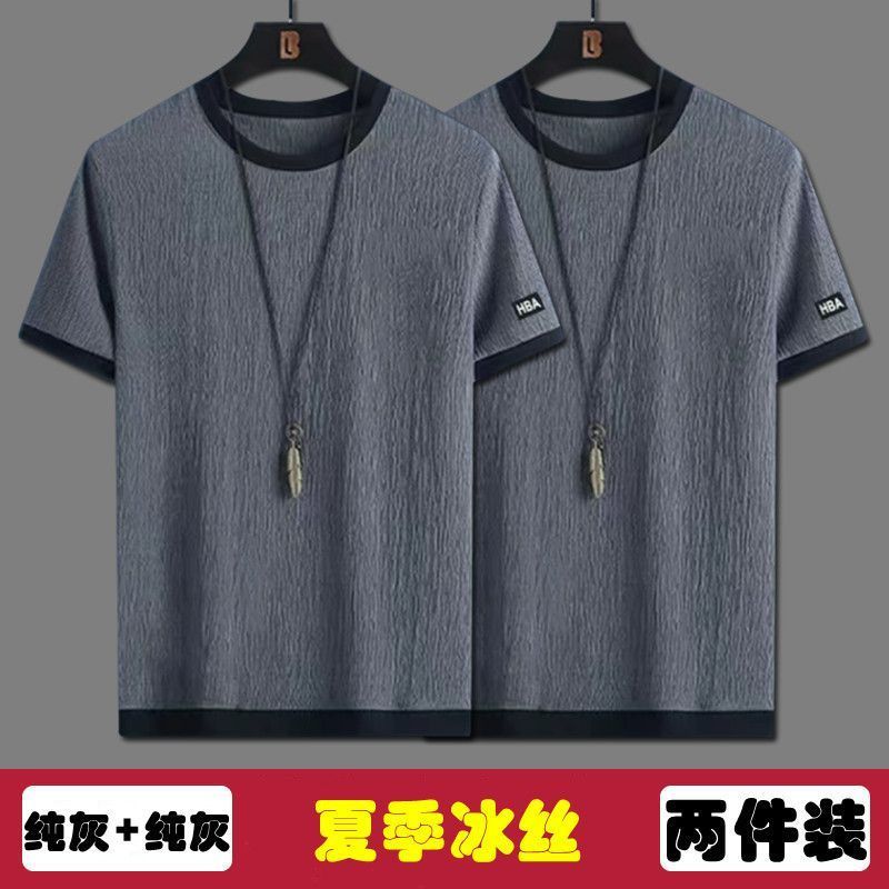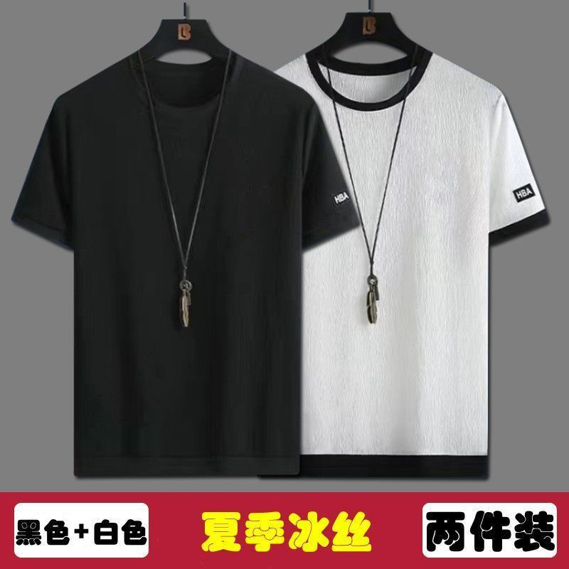 2023夏季冰丝短袖t恤男士大码宽松半袖凉感新款速干休闲运动上衣T