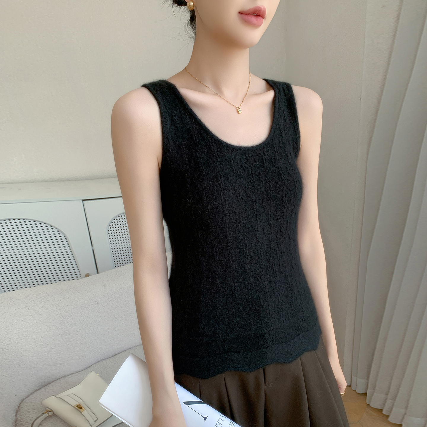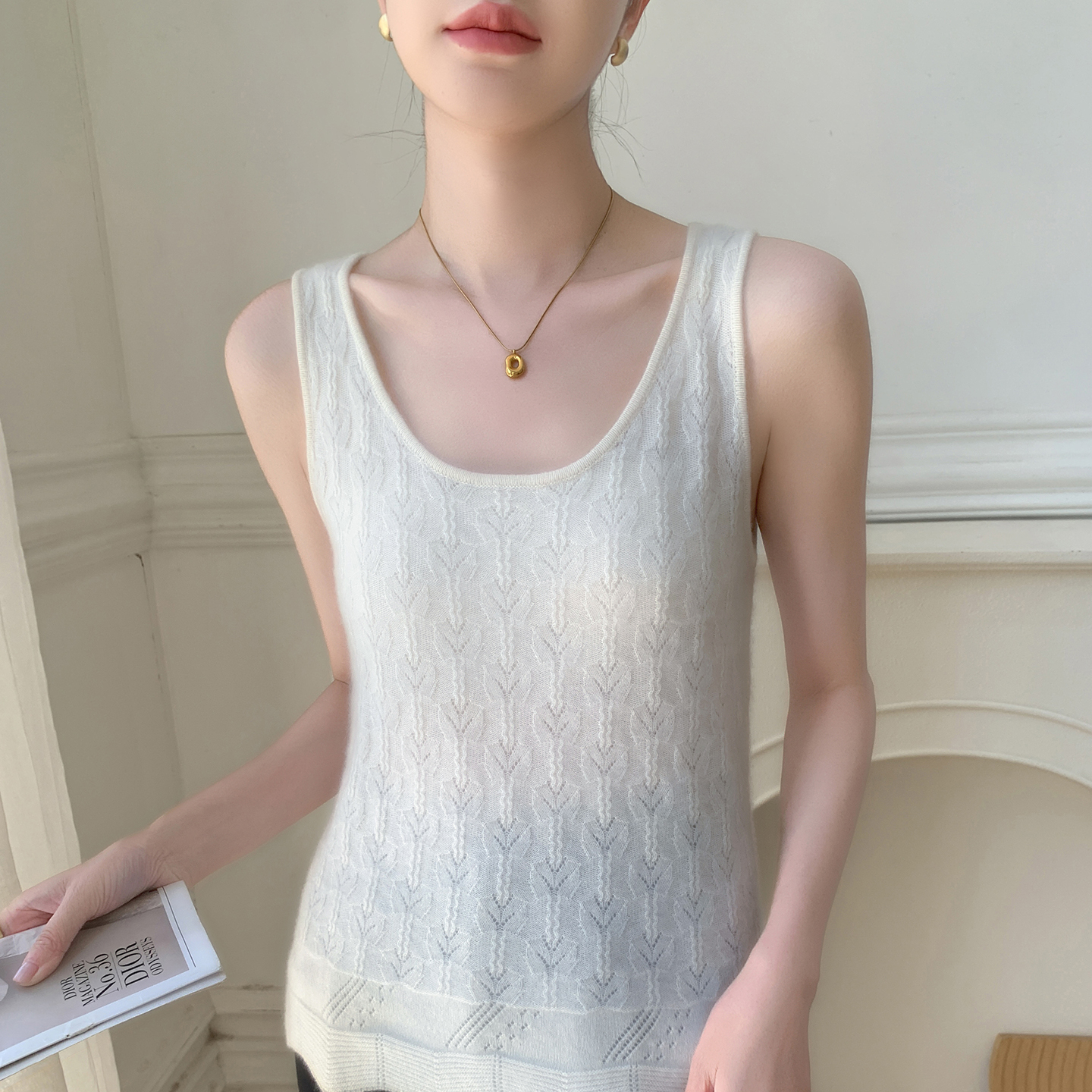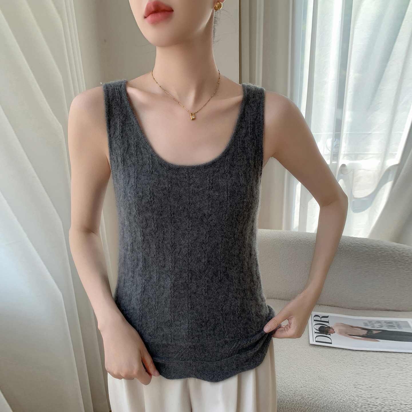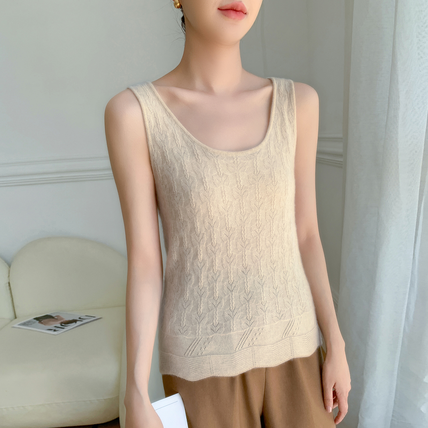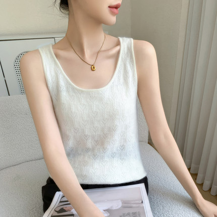 空气感亲肤山羊绒吊带女士圆领无袖针织毛衣宽松显瘦百搭打底背心