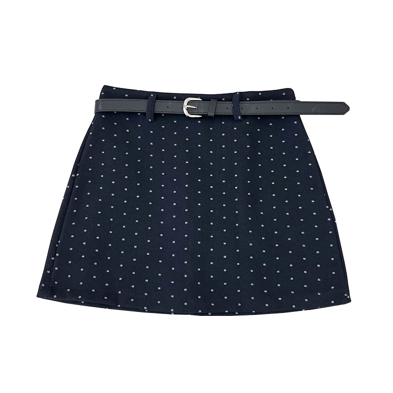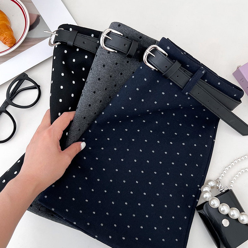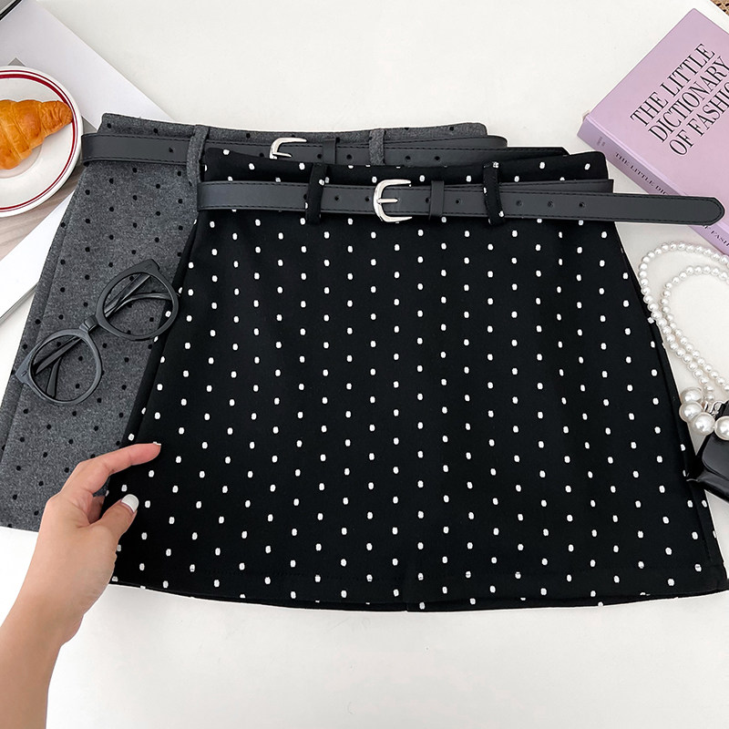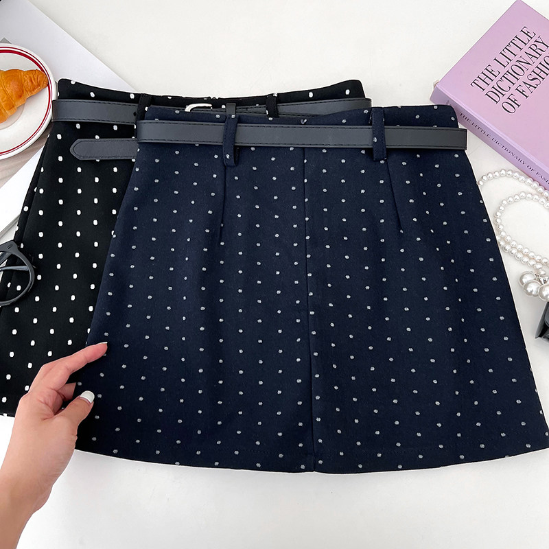 韩版时尚百搭波点印花毛呢高腰显瘦半身裙防走光短裙包臀裙女秋冬