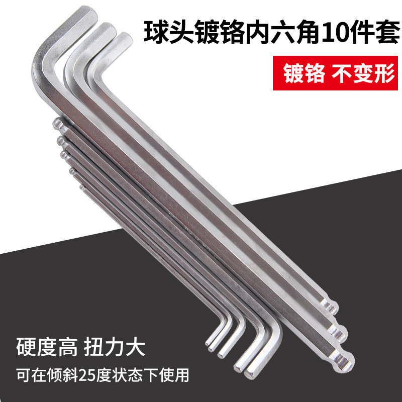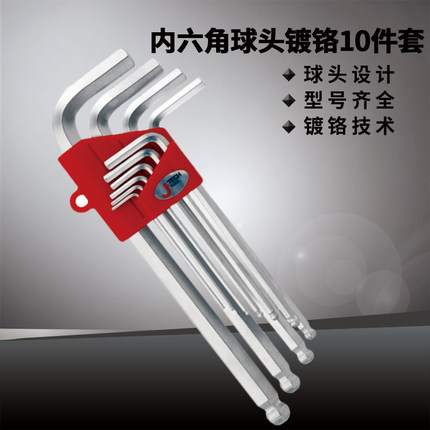 捷科工具内六角扳手球头镀铬10件套标准长加长BM/BL-C10