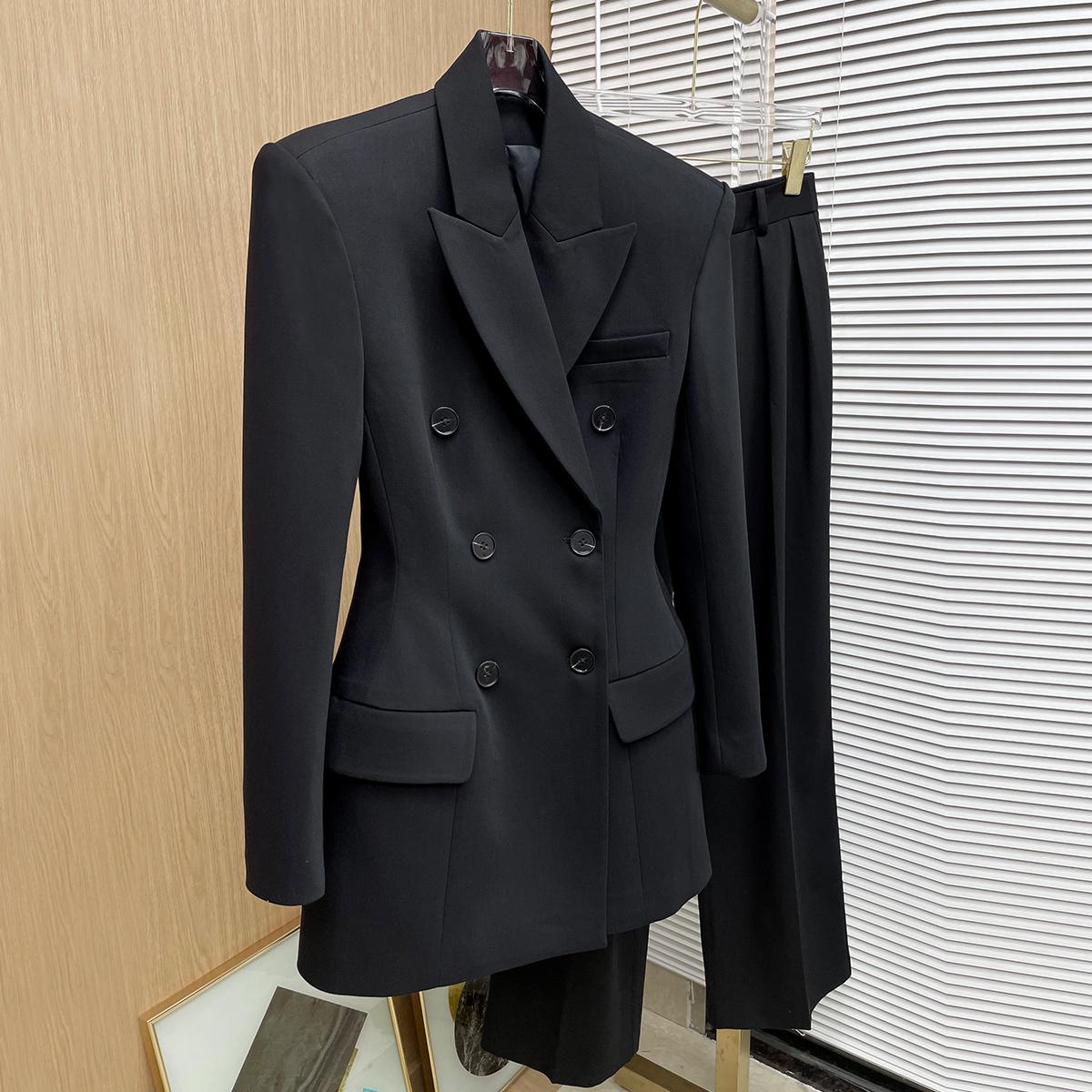 高定长款束腰西服套装 2025秋季新款通勤气质显瘦阔肩西装外套女