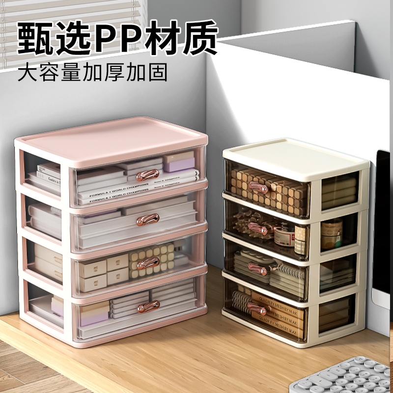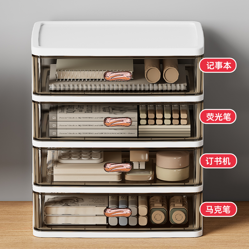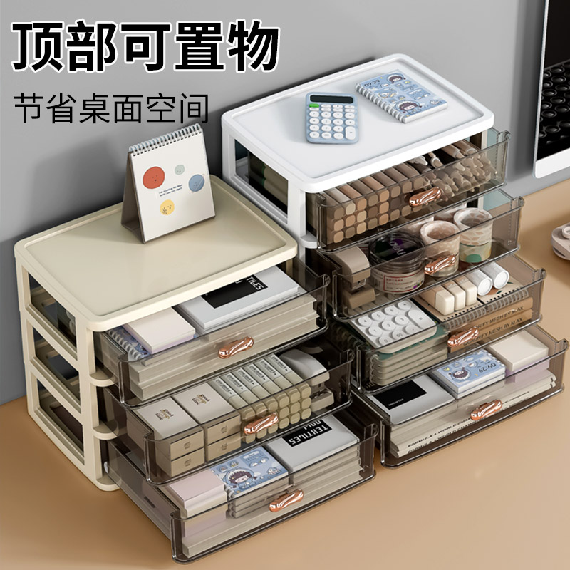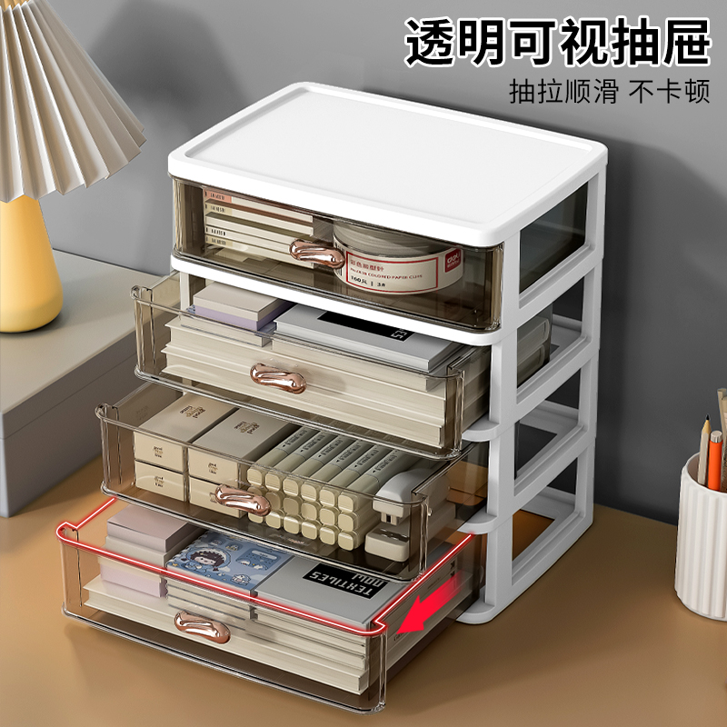 抽屉式桌面收纳盒办公室a4纸文件整理柜书桌上文具透明多层置物架
