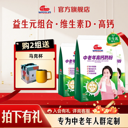 明一中老年牛奶粉成人多维400g*3袋装富硒高钙高铁不加蔗糖方便装