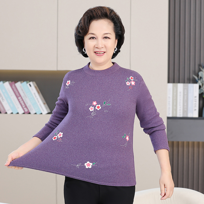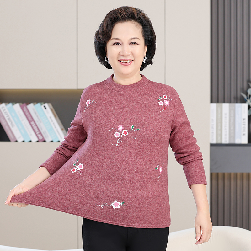 50-60妈妈装印花打底衫中老年人女装加绒加厚秋衣保暖衣秋冬装T恤