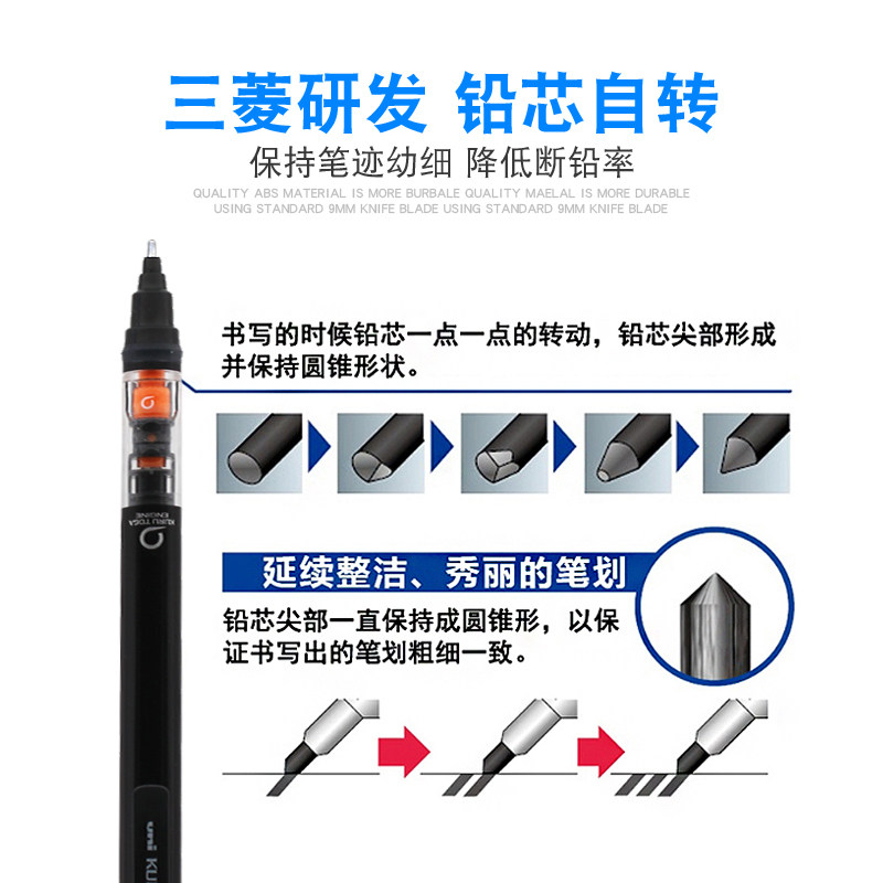 日本UNI三菱自动铅笔小学生写不断0.5三菱铅笔M5-452铅芯自动旋转自动笔低重心不断铅芯大赏KuruToga