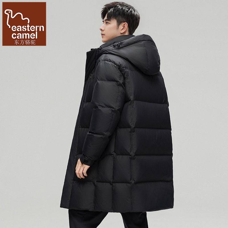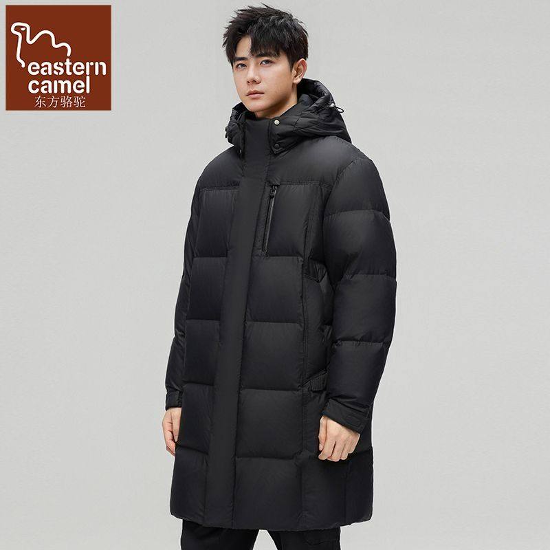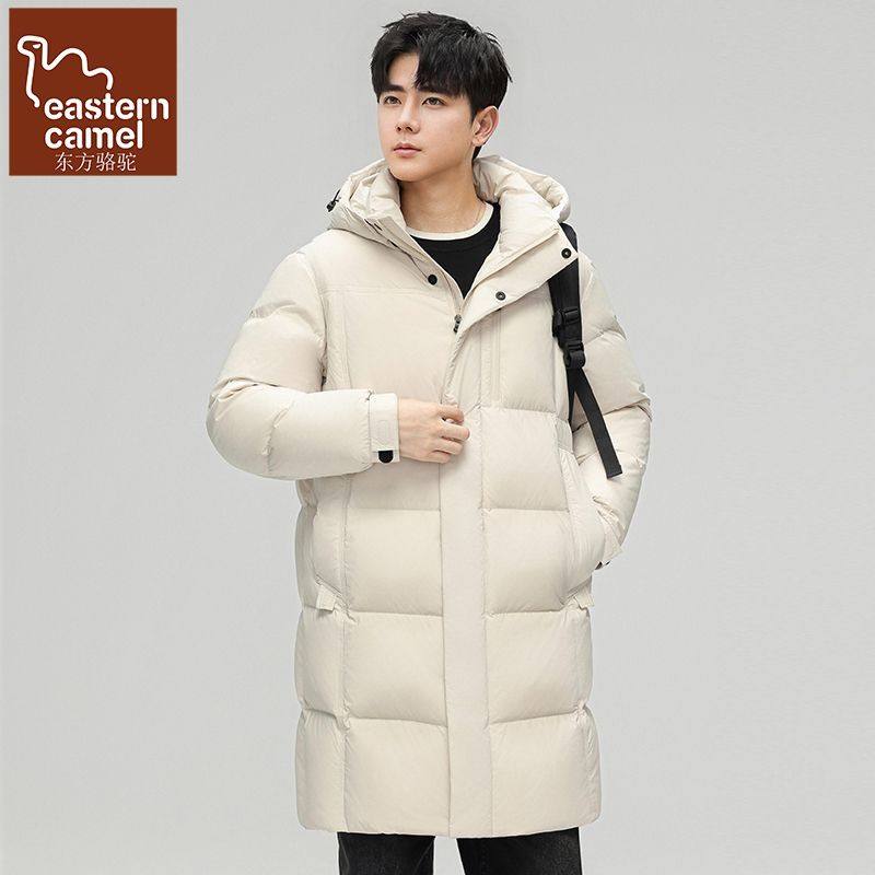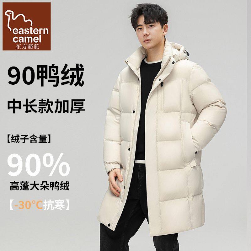 中长款90白鸭绒羽绒服男冬季新款潮流连帽纯色百搭保暖高充绒外套