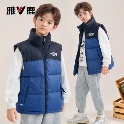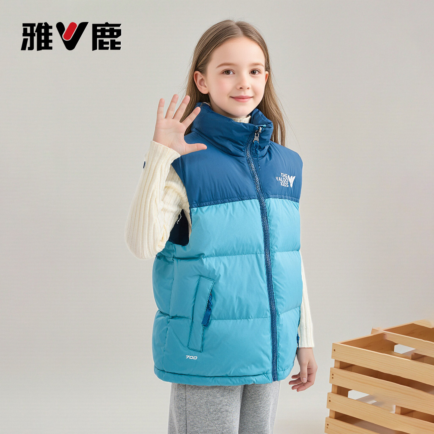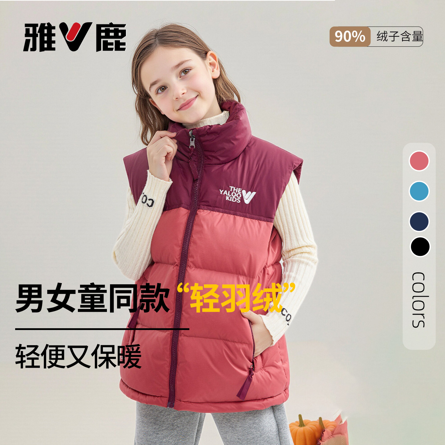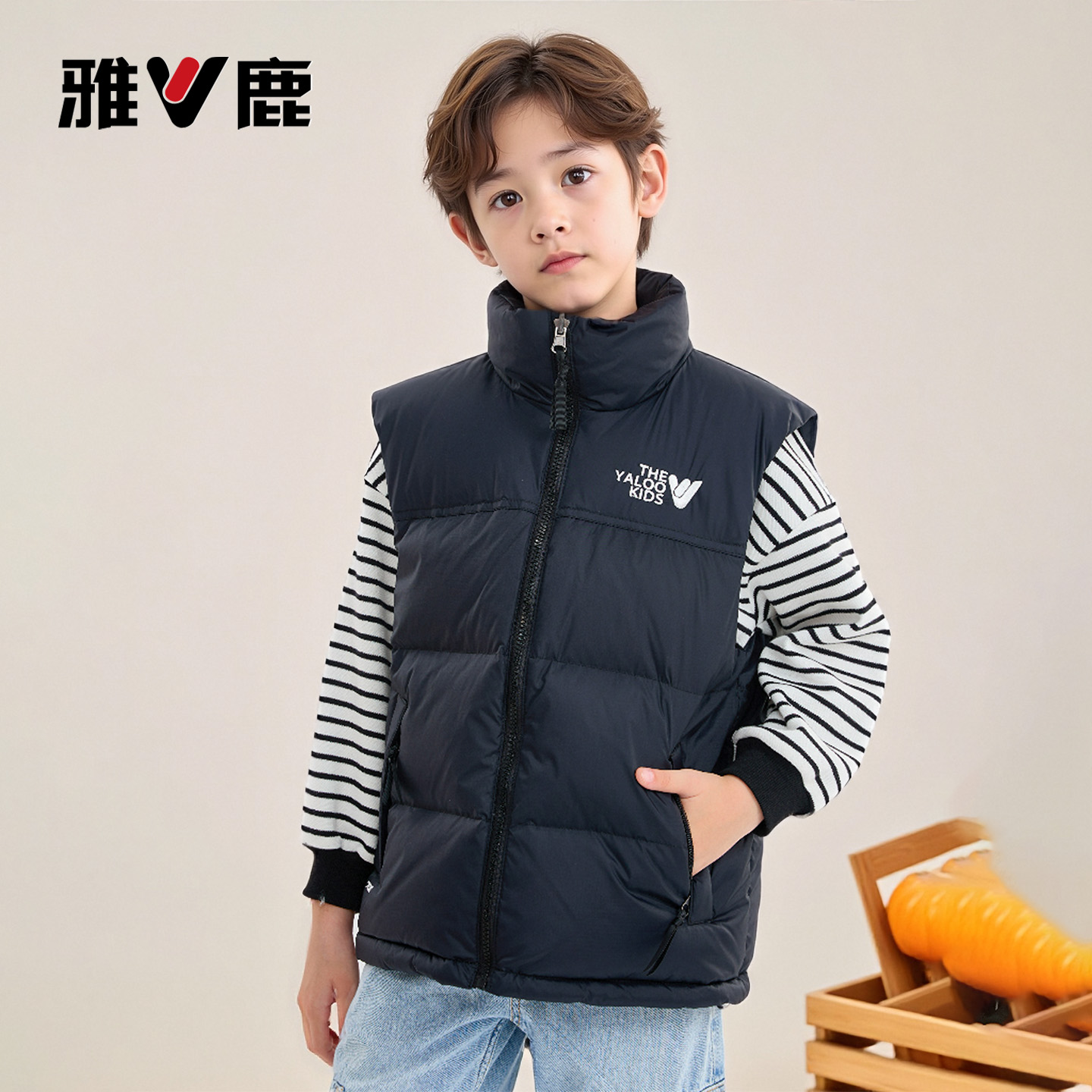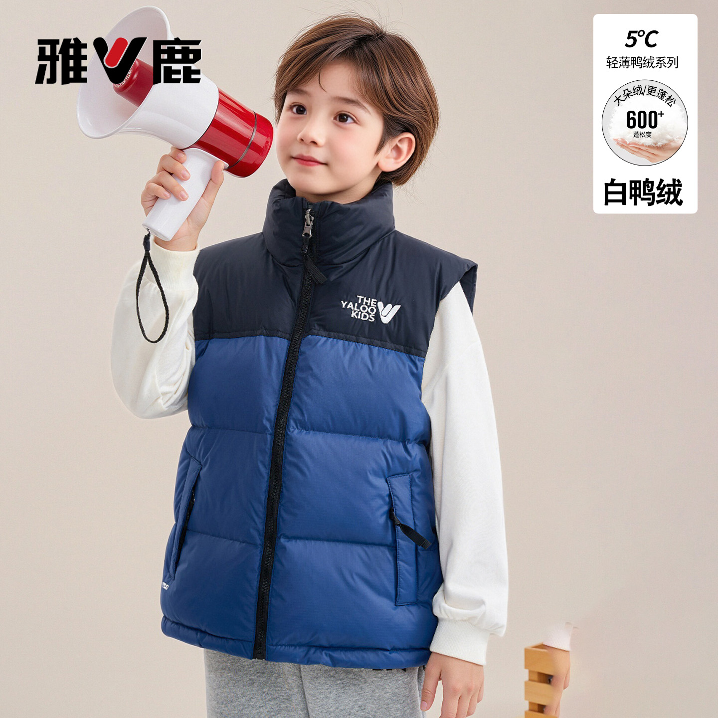 雅鹿儿童羽绒背心男童立领拼色2025中大童小童女韩版外穿马甲秋冬