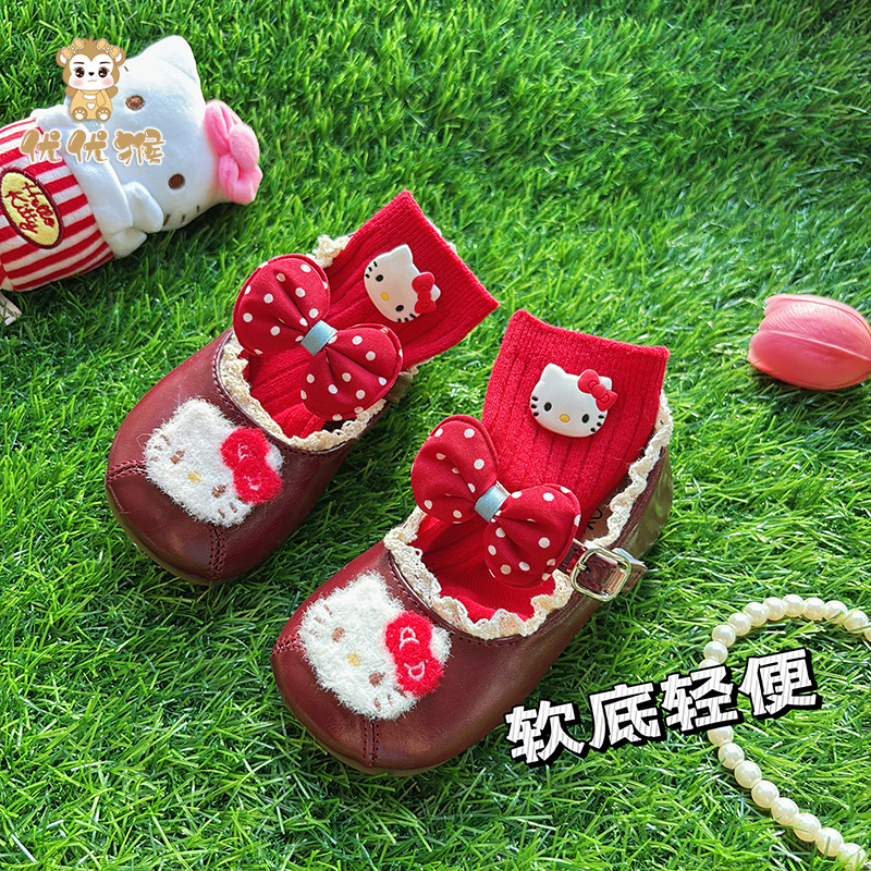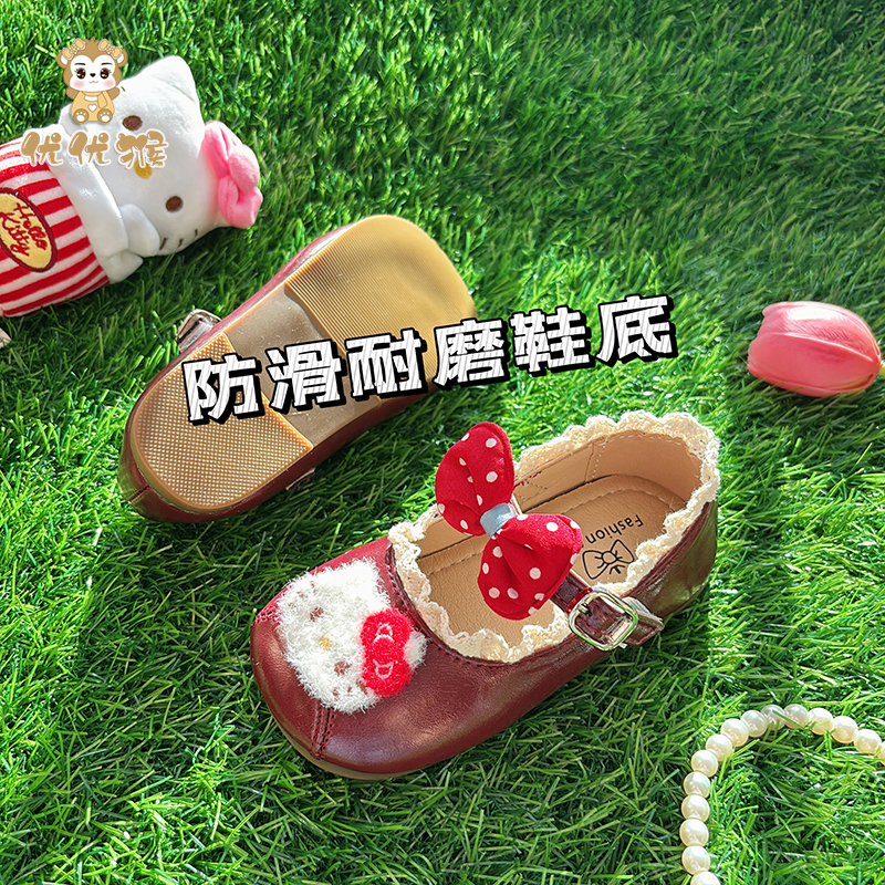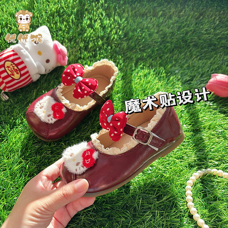 儿童新款软底防滑蝴蝶结猫咪皮鞋