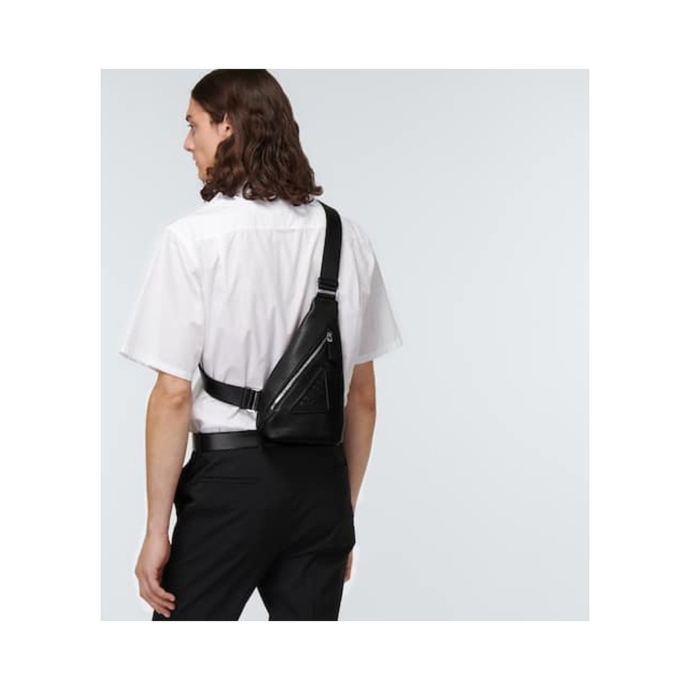 1h可退 潮奢 Prada 普拉达 男士 皮革斜挎包 black黑色 舒适时尚