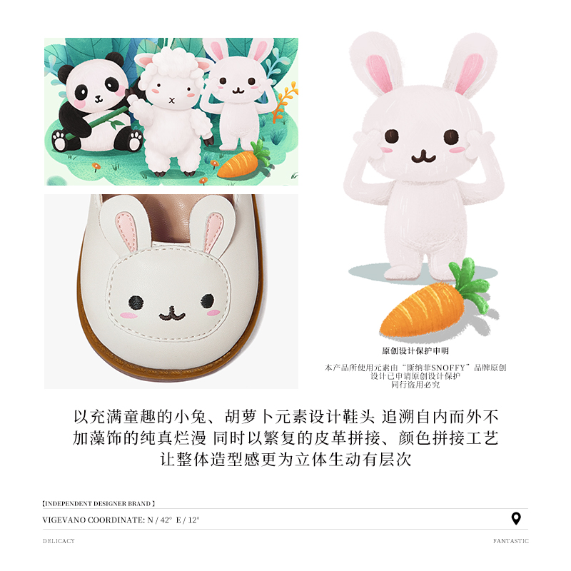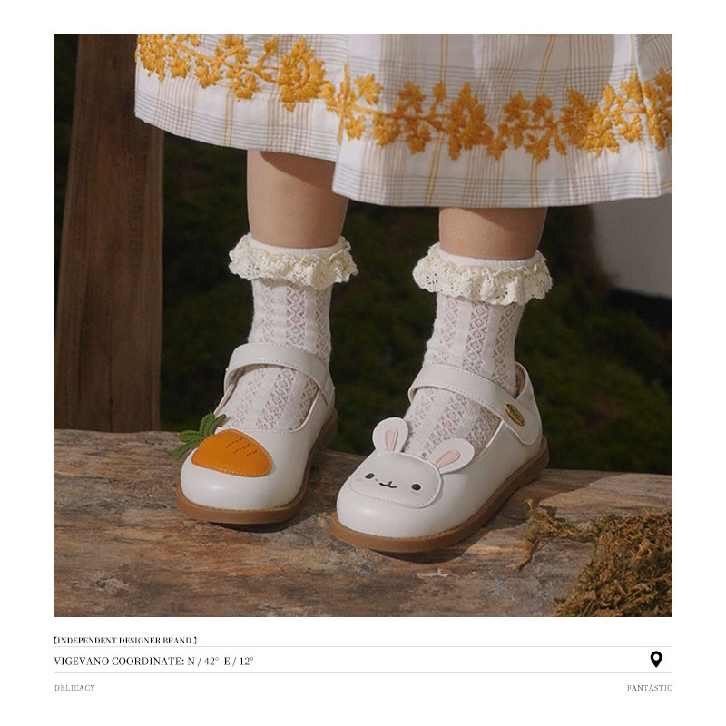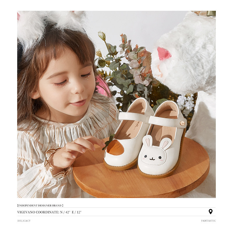 斯纳菲女童皮鞋宝宝春秋新款儿童白色兔子公主鞋软底小女孩单鞋子