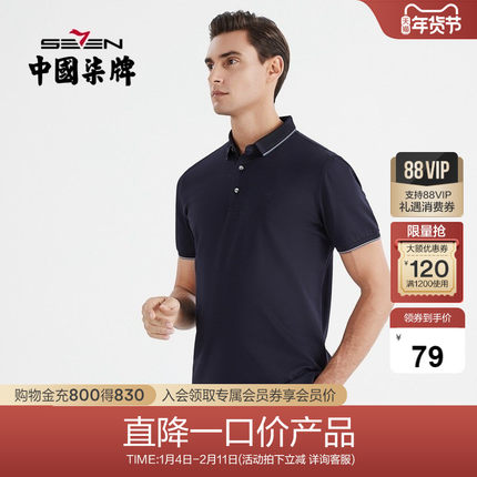 柒牌男装清仓男士夏季短袖polo衫撞色舒适透气翻领休闲保罗T恤衫