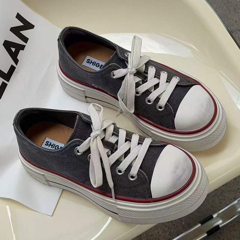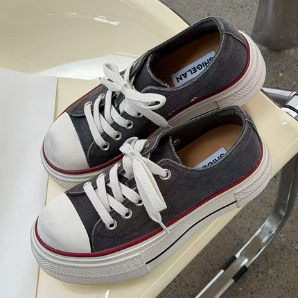 诗歌兰女鞋2026新款厚底增高系带板鞋时尚百搭学院风运动休闲鞋潮