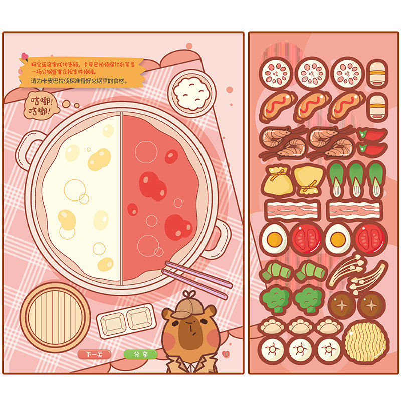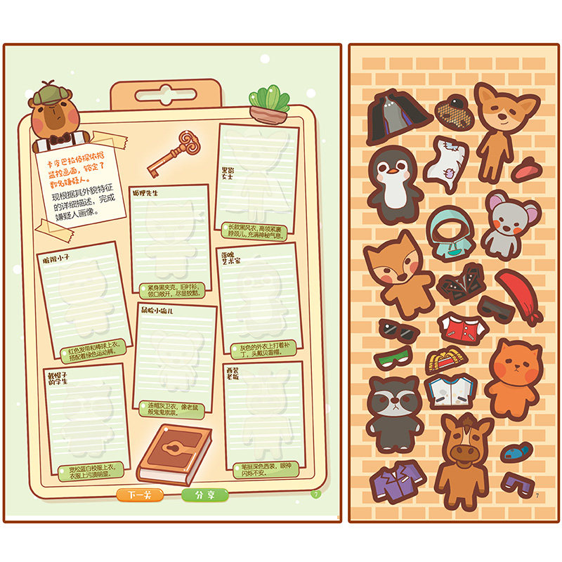 全2册卡皮巴拉闯关贴纸游戏超市闪击/萌探迷案3-5-6岁幼儿专注力思维能力培养贴纸书趣味闯关大挑战游戏书可爱水豚粘贴画创意拼图